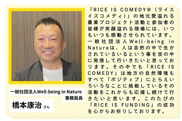 このプロジェクトを通じて、地域の魅力や資源を新しい視点で掘り起こし、多くの人たちと共に農業の楽しさを再発見していきたいと思っています。地方に暮らす子どもたちも、きっと地元を誇りに思えるはずです。今回の30回クラファンのプロジェクトは「お米×〇〇」と題して、農業の価値を再発見しよう!をテーマに展開します。
