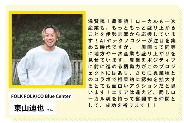 想いが広がり、地元から全国へと広がる。それでもまだまだ農業はネガティブに捉えられがちだけど、実はそれだけじゃないんです。しっかり儲かるし、機械化はかなり進んでいるし、みんなが抱いているイメージとは全く違う。僕たちは西浅井で人口4000人を雇用できるような大規模産業を生み出し、地方に新たな希望をもたらしたいと思っています。ネガティブをポジティブに変え、農業から未来を切り拓いていきます。