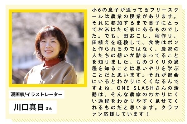 ついに始動!ONE SLASHの30回クラウドファンディングがスタートします!合言葉は「RICE IS FOUNDING 〜農を前へ〜」。その記念すべき第1弾は、滋賀県を拠点に活躍する人気マンガ家・吉本ユータヌキさんとのコラボ!お米の魅力をユーモアたっぷりに描いた物語が誕生!