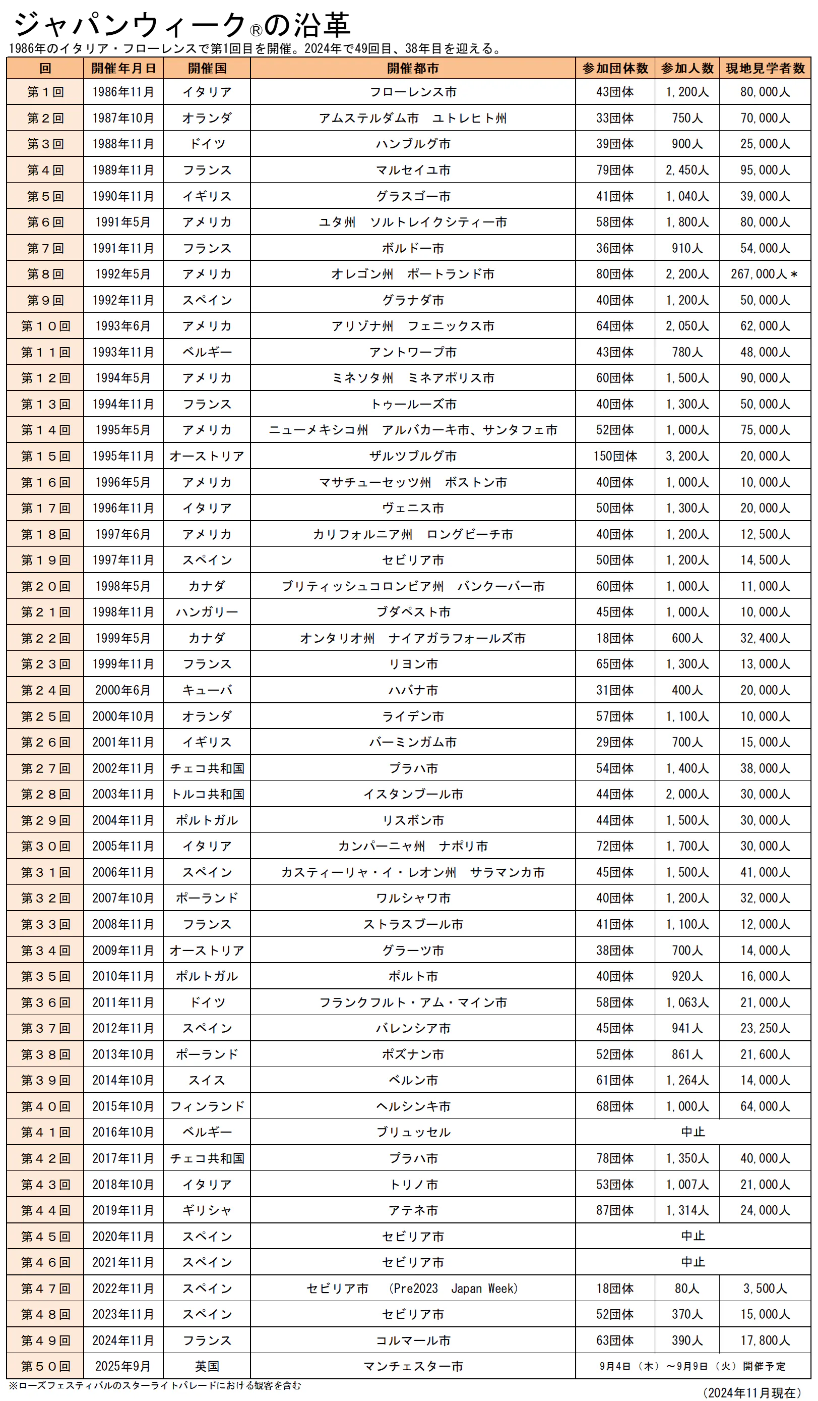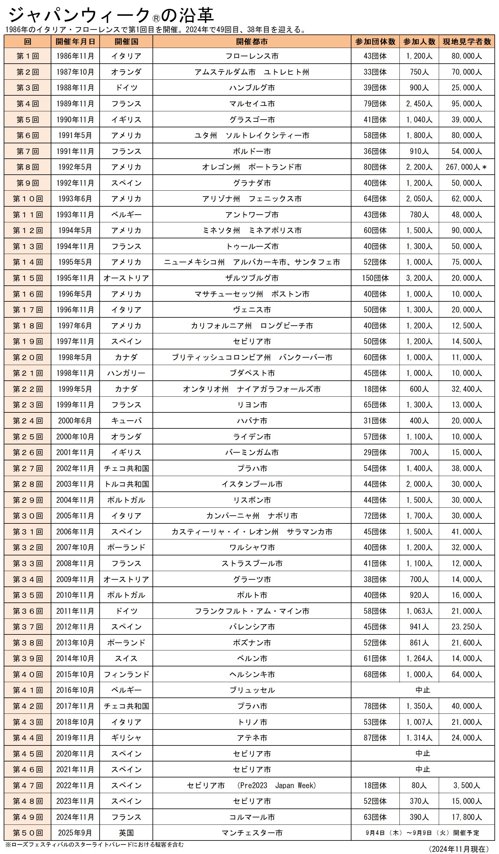 2025年4月30日(水):第50回ジャパンウィーク申込募集締め切り