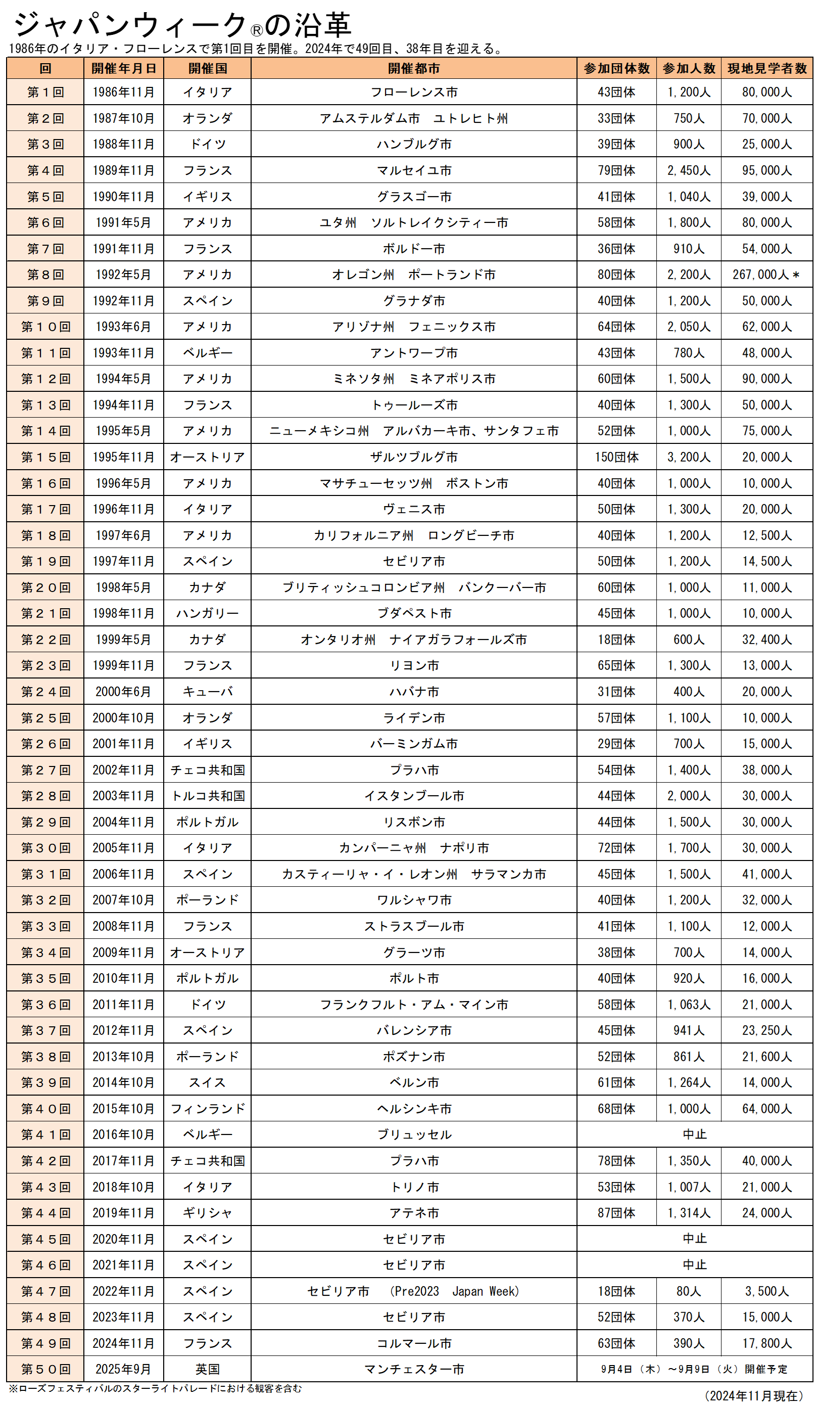 2025年4月30日(水):第50回ジャパンウィーク申込募集締め切り