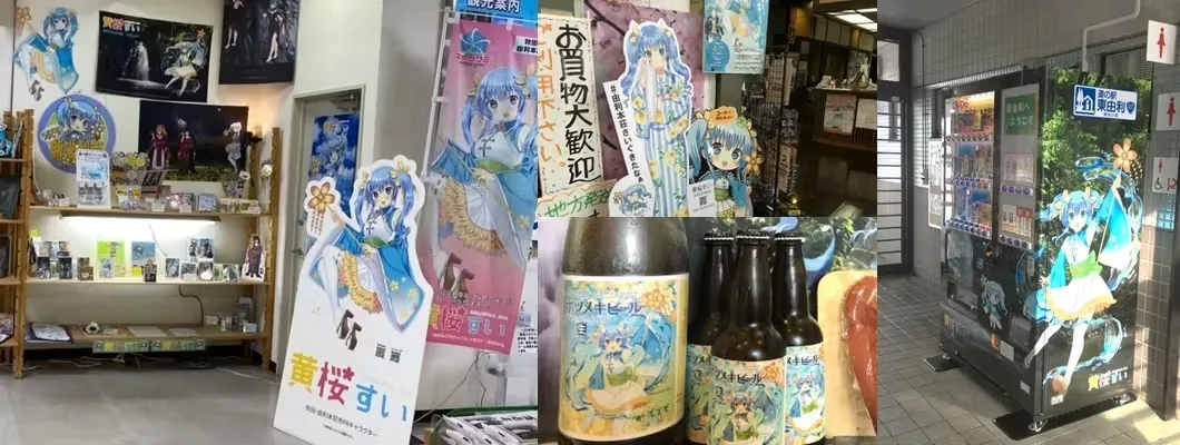 2016年5月から道の駅東由利を拠点に黄桜すいプロジェクトとして地元の有志、声優の相葉ゆきこさんや、公式イラストレーターの東城みなさんの他、県内外のクリエイターさんたちとも協力していただき活動してきました。