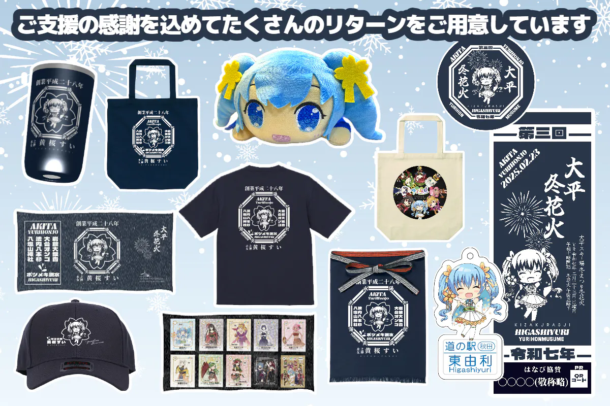 2025/05/16 15:10【リターン発送完了のお知らせ】本日、最後のリターンとなる「デジタル色紙プラン」をご支援いただいた4名の皆さまへの発送が完了いたしました。それ以外の全てのリターンは、昨日までに発送を終えております。すでにお手元に届いている方もいらっしゃるかと思いますが、まだの方は今しばらく(2~3日ほど)お待ちください。万が一、お届けしたアイテムに破損や内容の誤りがございましたら、お手数ですがご連絡いただけますと幸いです。改めまして、このたびは『豪雨災害を乗り越えて 小さなスキー場に「冬花火を打ち上げたい」by 黄桜すい』に温かいご支援を賜り、誠にありがとうございました。災害からの復旧がまだまだ続く東由利ですが、皆さまの想いが詰まった「冬の美しい思い出」を力に変えて、これからも地域を元気にしていけるよう尽力してまいります。ーーーーーーーーーーーーーーーーーーーーーーそして、本日のボイスは・・・初登場!!!!浜梨リン子!!【FANBOX開設のお知らせ】このたび、黄桜すい・ゆりほん娘の世界をもっと深く楽しんでいただける場として、PixivFANBOX を開設しました!月額550円で✔︎ 黄桜すい物語のリライト版+AIイラストで世界観を拡張✔︎ 制作の舞台裏・開発秘話✔︎ 限定イラスト・ボイス・壁紙 など“この世界を一緒に育てる”ための特別なコンテンツをお届けしていきます。あわせて、HEXAでのNFT展開も予定しており、住民票NFT・キャラカードNFTなどを通じて「応援の記録=ファンとしての足跡」を永く残していける仕組みをつくっています。さらに、生成AIによって表現できる“もうひとつの物語”にも挑戦しています。手描きのイラストとAI表現は、対立するものではなく、それぞれに異なる価値と感動があります。AIだからこそ描ける世界、そしてイラストレーターによる唯一無二の手描きの魅力──その両方を大切にしながら、ゆりほん娘の物語を広げていきたいと考えています。ファンの皆さんと一緒に育てていく“新しい地域の物語”を、これからもどうぞよろしくお願いいたします。デジタル技術を積極的に活用してこれまで実現できなかった地域課題の解決にも取り組んでいきます。▼FANBOXはこちらから▼https://ympjapan.fanbox.cc/ もっと見る【リターン発送のお知らせ】