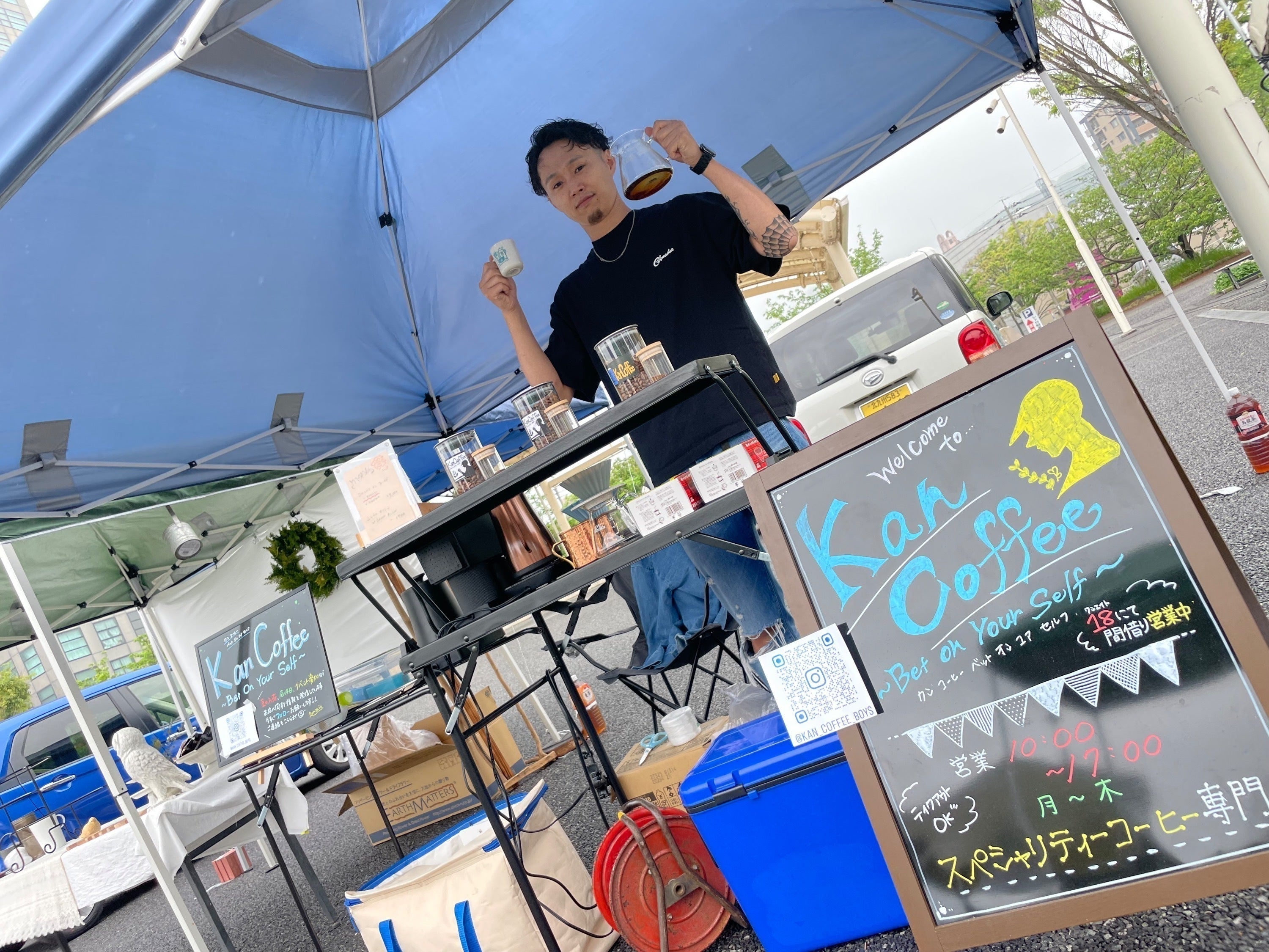 今年の1月から真剣に独学でコーヒーを学び、失敗を恐れずイベント出店や間借り出店をし、今では僕の出店先を狙って来てくださるお客様も増えてきました!自店舗では地域の皆さまに愛される空間づくりを目指し、全国には私のコーヒーを