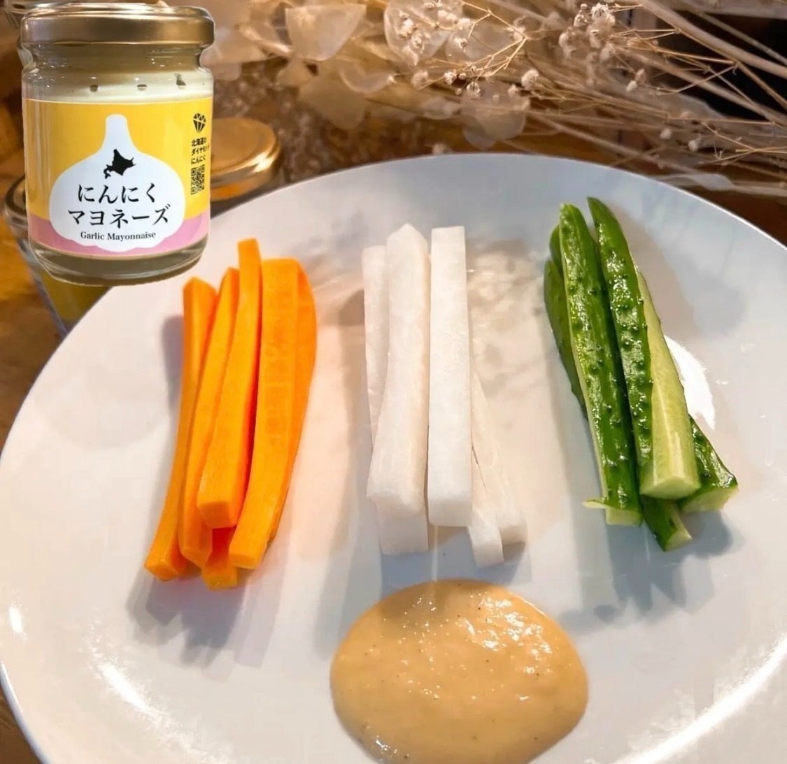 →大根にんじんセロリいずれも非常に合います◎これまたにんにくアクセントが野菜の味に乗ってくるので普通のマヨネーズでは物足りなくなってしまうひと多数