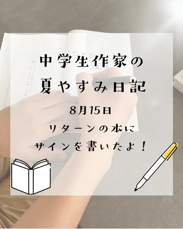8月15日は、リターンのひとつにサイン本があるので、サインを書いてみました。