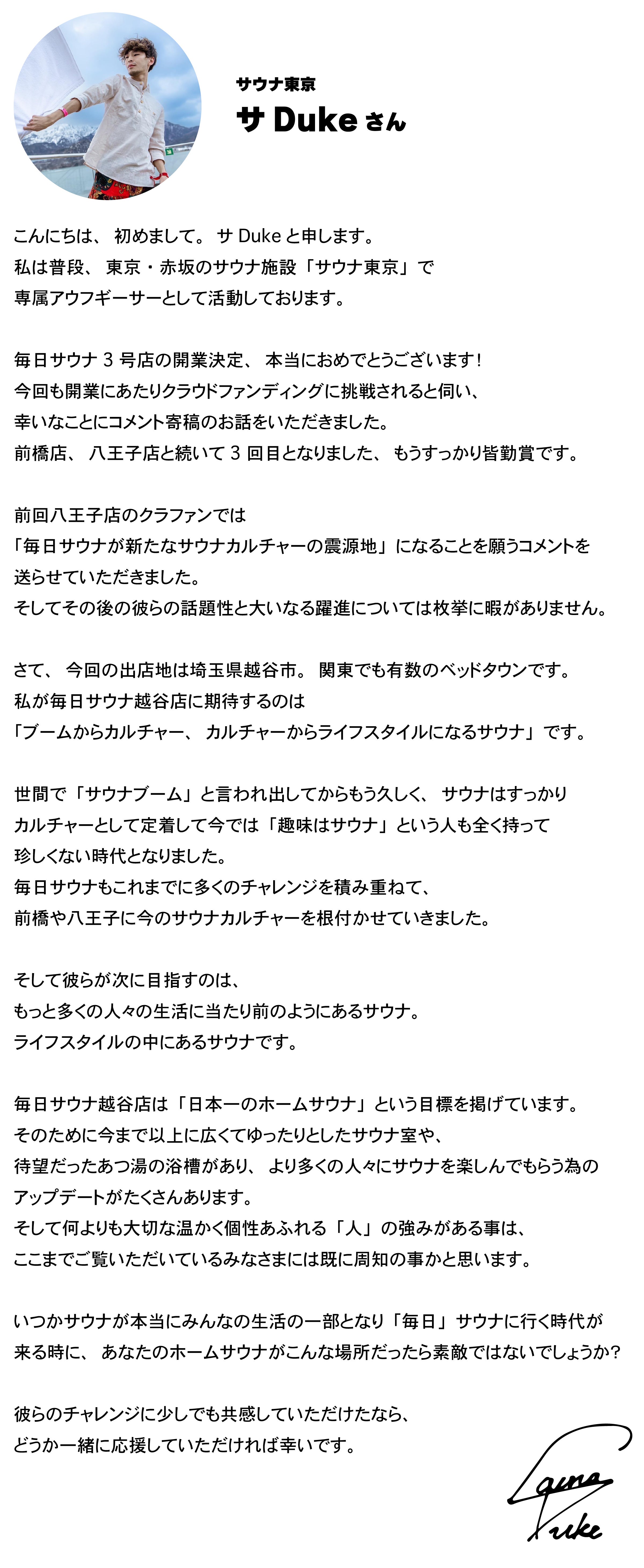 その夢の実現に向けて、毎日サウナ3号店を埼玉県越谷市に2024年4月にOPENさせます。