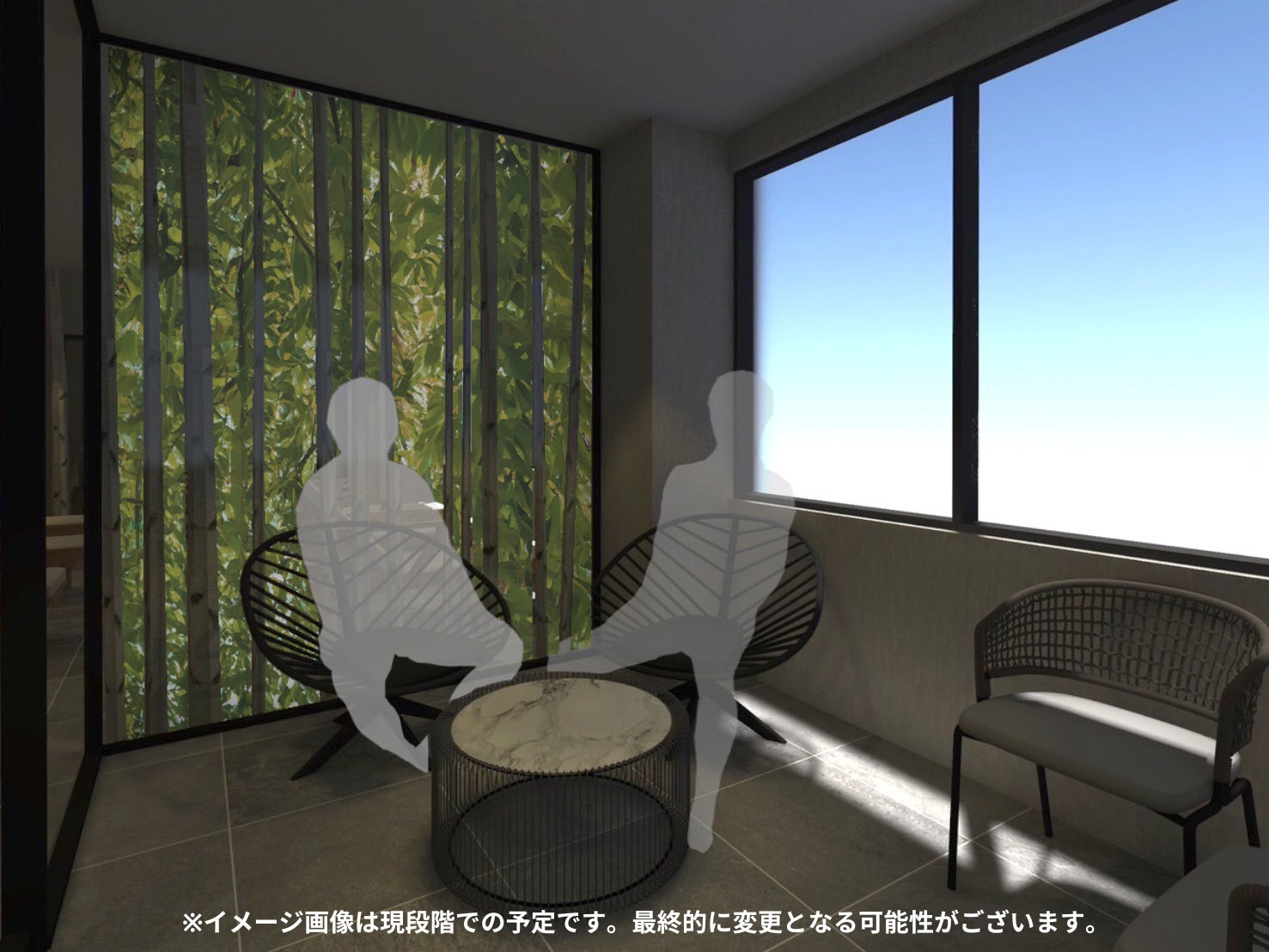 ◻︎本物の白樺の木を約100本使用した休憩スペースは、街中にいながらも自然の温もりを感じられる空間で、都会の真ん中で、森にいるような感覚と、心温まる特別な体験を提供します。
