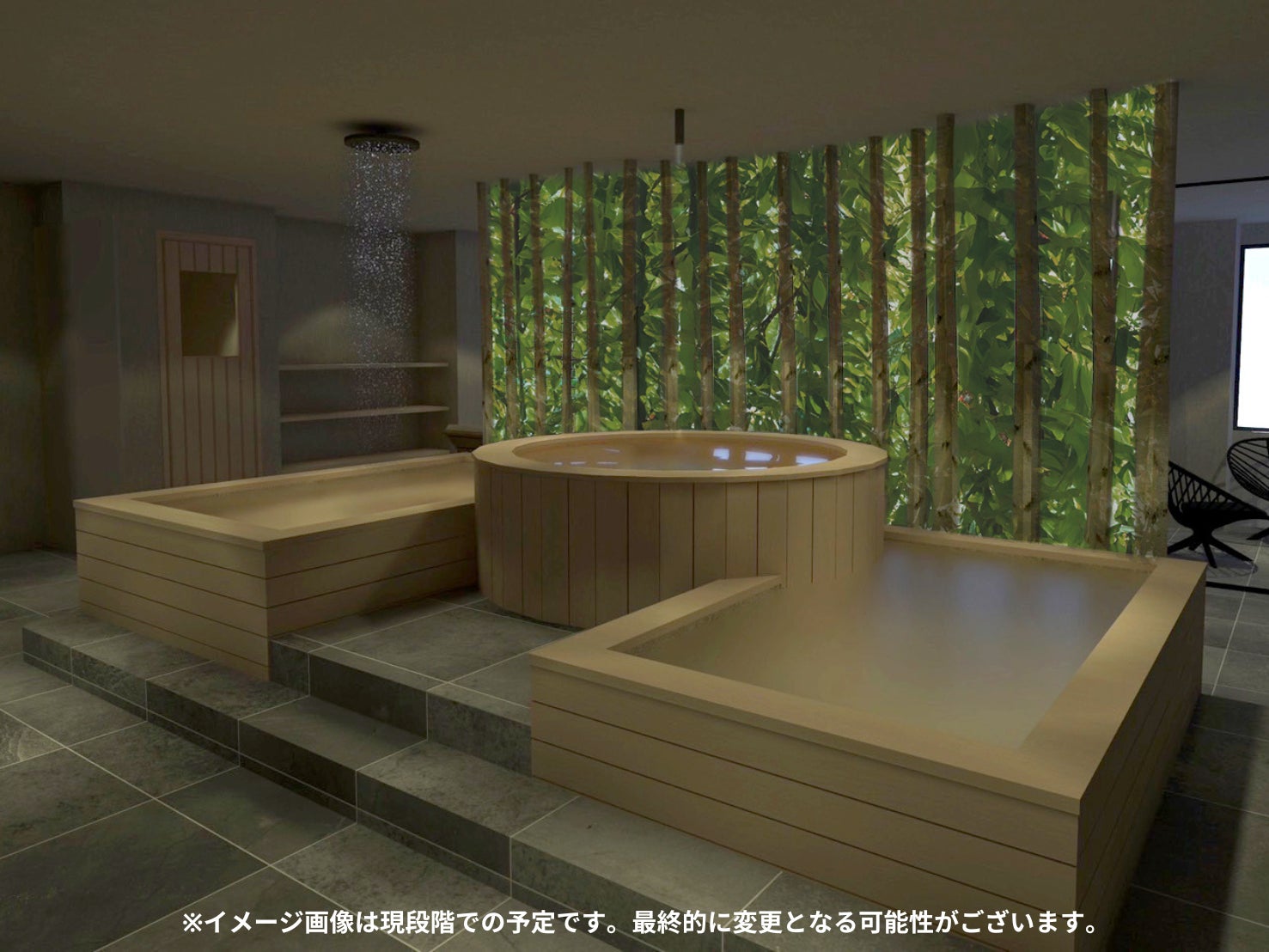 ◻︎新たに導入予定のお風呂は天然の薬草エキスを溶け込ませた薬草泡風呂(約40℃〜41度)。細かな泡が全身を包み込み、薬草の香りと効能が肌や心に浸透します。体の芯から温まりながら、自然の恵みを感じる贅沢なリラクゼーションをお楽しみください。水風呂との温冷交代浴も楽しめます。