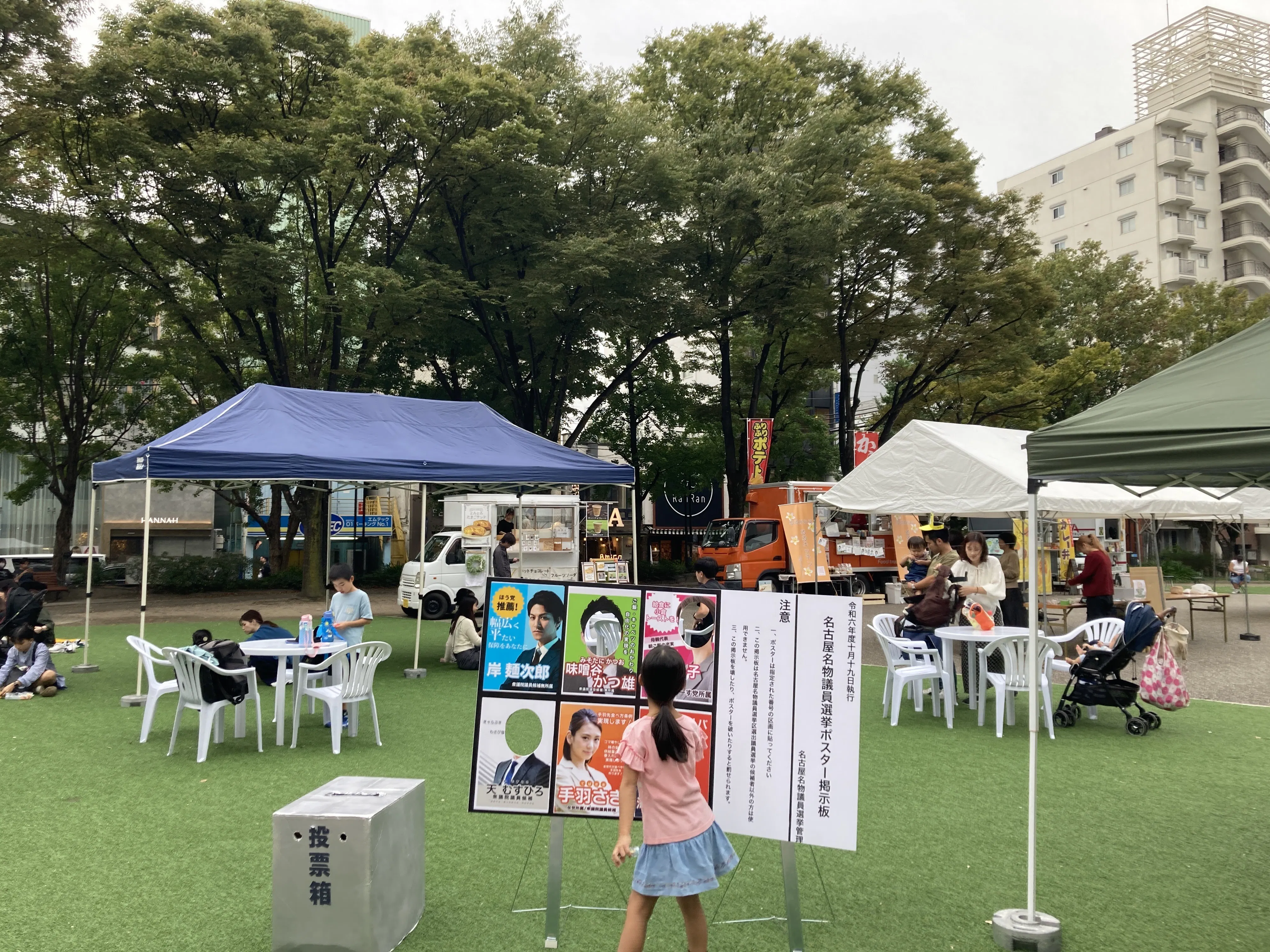 2024/10/27 16:59 こんにちは!NPO法人Mielkaです! 今回は10月26日に愛知県名古屋市の矢場公園で開催した「ふらっとVoteフェス2024」について報告します! 1週間前の天気予報は雨でとっても不安でしたが、当日は無事雨は降らず、過ごしやすい気温で開催出来ました! ステージでは若者中心のパフォーマンスと「政治家ふらっとーく」を行いました。 若者中心のパフォーマンスでは主に名古屋で活躍されているシンガーソングライターの方にご登場いただきました。カラオケ50点出したことある僕からしたら、皆さんの歌は本当に上手すぎて聞き入っちゃいました! 「政治家ふらっとーく」では今回の衆議院選挙比例東海ブロックの10政党に所属されている方々にご登壇いただきました。今回の衆議院選挙の立候補者や県、市議会議員の方、参議院議員の方などたくさんの政治家の方と「ふらっとーく」できました!なぜ政治に興味を持ったのか、政治に関する仕事をなさっている中で大変なことなど普段は聞けない貴重なお話を伺えました! 選挙ブースはご来場頂いた皆さんに大好評でした!ここでは「選挙ポスター顔出しパネル」、「投票箱ヘッドくん」、「世論を見える化」、について触れていきます! 「選挙ポスター顔出しパネル」は見出しの写真に写っているものです!名古屋名物を文字って擬人化して選挙ポスターにしました!顔をはめることができるので、子供から大人まで大人気でした!今回ステージに出てくださったシンガーソングライターの方に「文字った名前がめっちゃ面白いです!」とお墨付きを貰っちゃいました!笑 「投票箱ヘッドくん」は来てくれた子供たちに大人気でした!投票箱を被って走ったり、被ったまま親御さんに写真を撮って貰っていました!徹夜で作った甲斐がありました! 「世論を見える化」では今回の会場が名古屋市ということで、名古屋名物(味噌カツ、小倉トースト、味噌煮込みうどん、ひつまぶし)とちょっと真面目に働き方改革(ワークライフバランスの推進、リカレント教育の推進、非正規雇用の正規化、同一労働同一賃金)についての世論を見える化しました!⤴シャチホコに会場内の世論が映し出されています!! もし、この記事を読んでいる人の中に会場に来てくださった方がいたら、今回の「ふらっとVoteフェス2024」を通して少しでも選挙に興味を持ってくれたり、実際に投票に行ってくださればとっても嬉しいです! ステージに来てくださった、シンガーソングライターの皆さま、政治家、立候補者の皆さま、来場者の皆さま、クラウドファンディングに支援してくださった皆さま、企画に協力してくださったドットジェイピーとPolivoiceの皆さま、会場設営に携わってくれた皆さまなどお世話なった皆さま本当にありがとうございました! このクラウドファンディングは10月31日まで実施しています!ご支援のほどよろしくお願いします! もっと見る