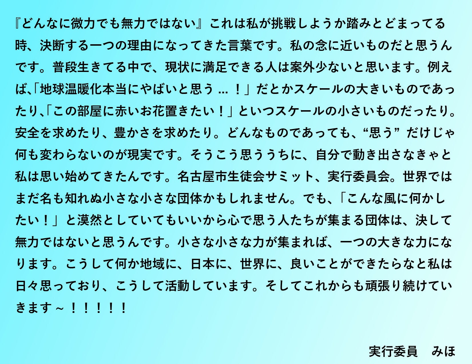 〇実行委員からのメッセージ