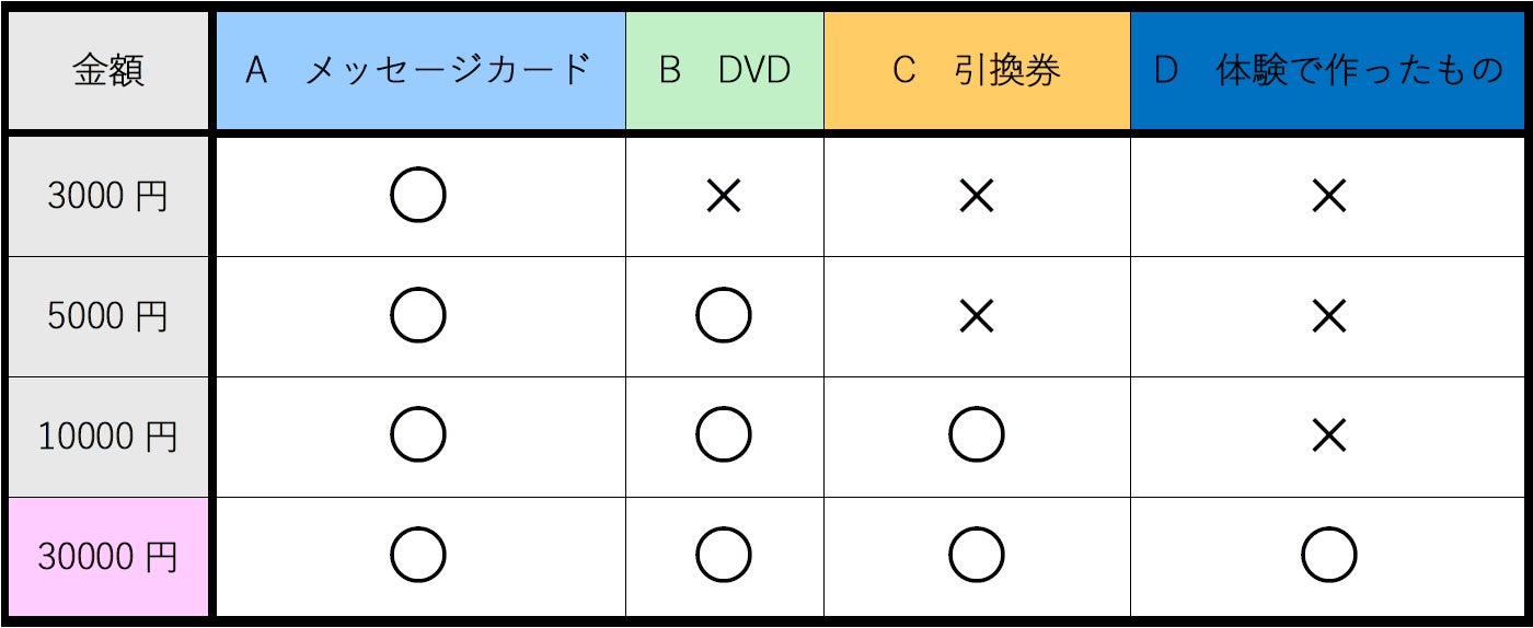 返礼品一覧表