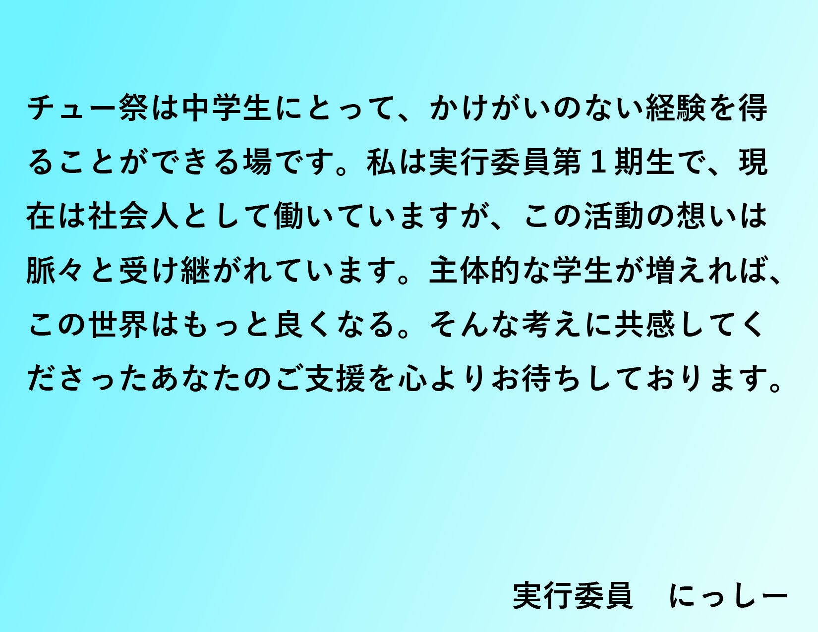 〇第2回中学生の祭典「チュー祭」にご支援ください!