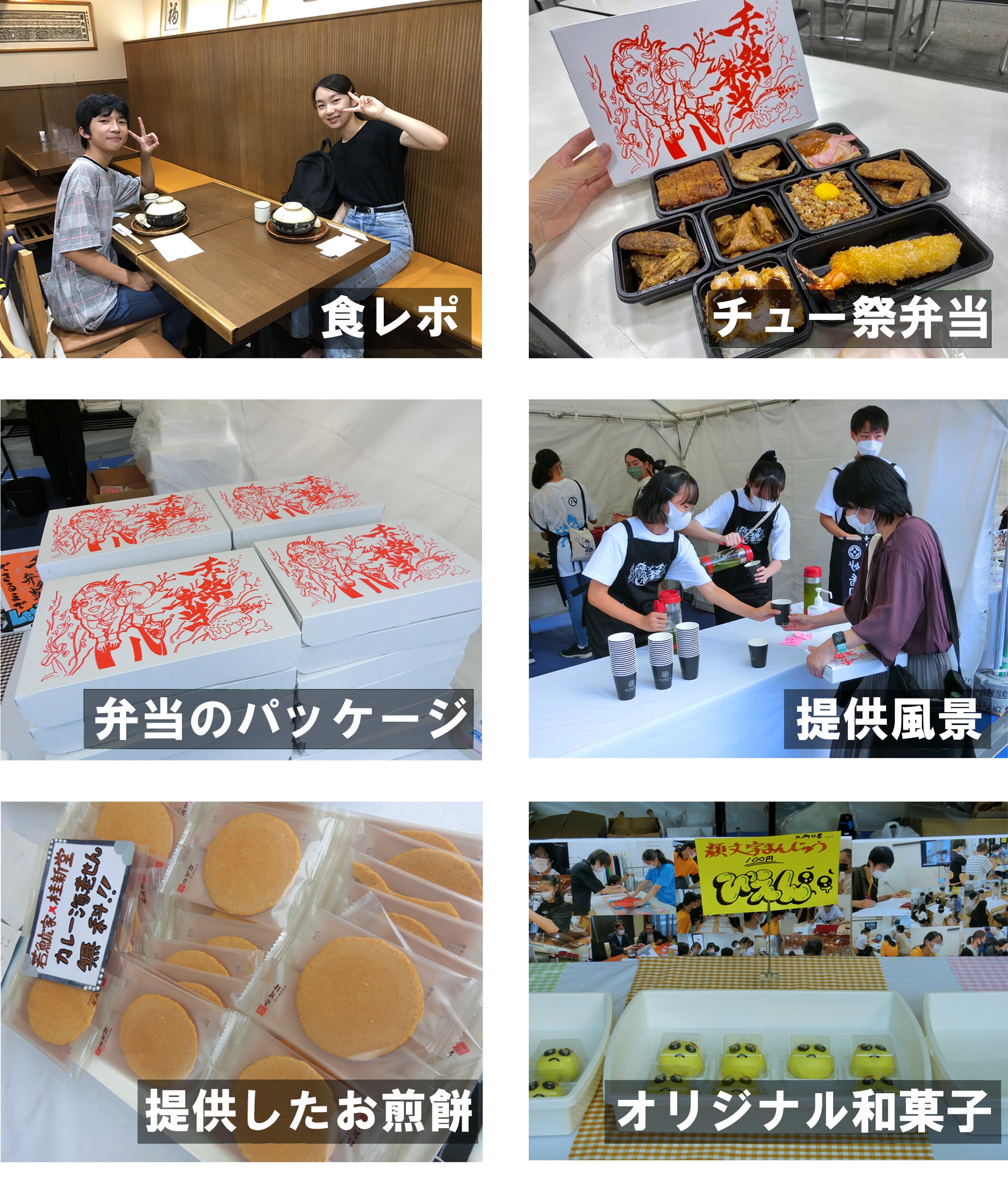 - ・名古屋の食文化を全国に自慢したい!「チュー祭弁当」は名古屋の名店にご協力をいただき、できあがったオリジナルのお弁当です。第1回チュー祭で発案したこのオリジナル弁当は、チュー祭の目玉になりました。 他にもモーニングタイムではあんぱんやコーンスープ、アフタヌーンティータイムには、和菓子とお茶3種を用意しました。 全て地元企業にご協力を仰ぎます。