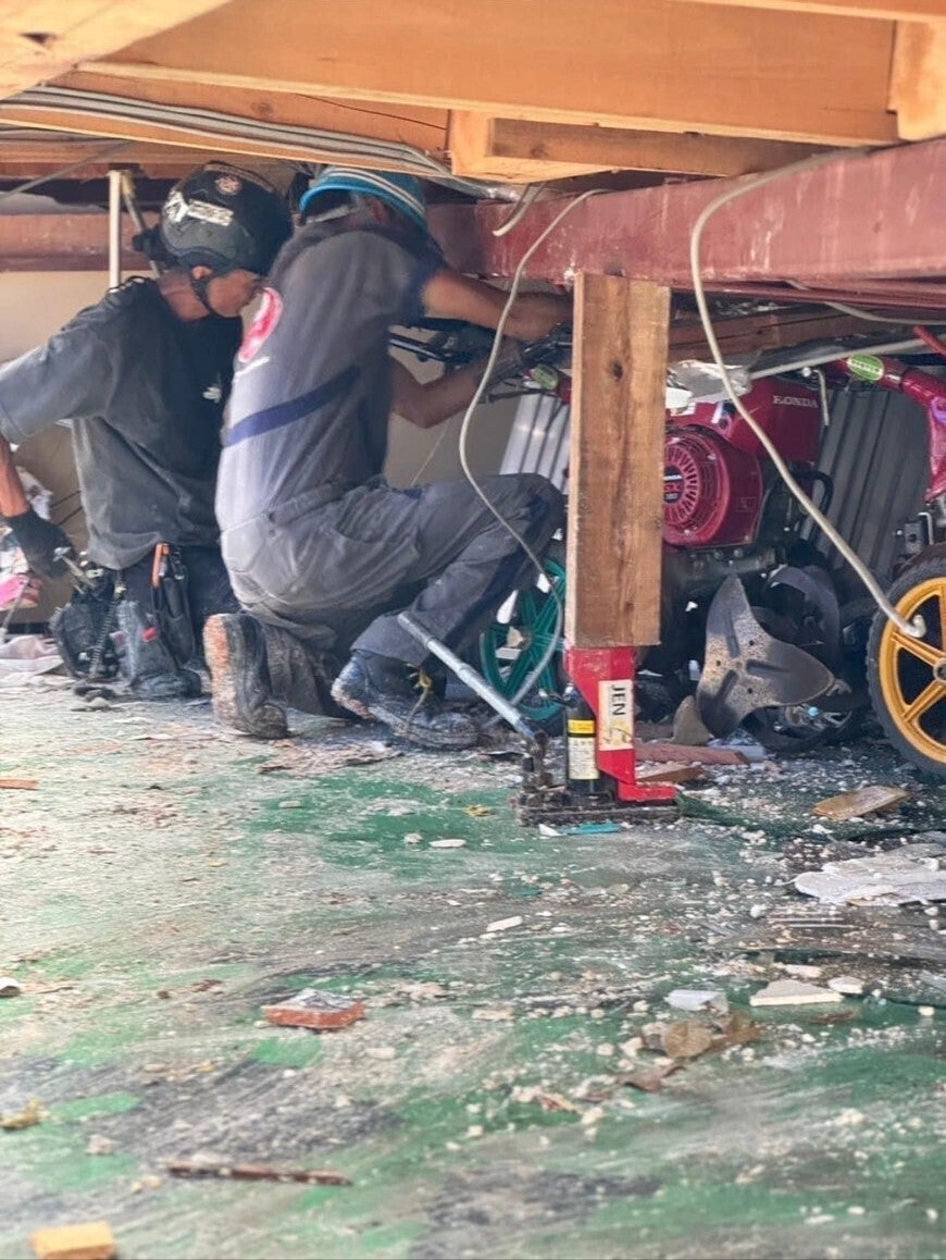 ボランティアの方々にも協力頂き、倒壊した店舗部から使用可能な農機も取り出して頂きました。