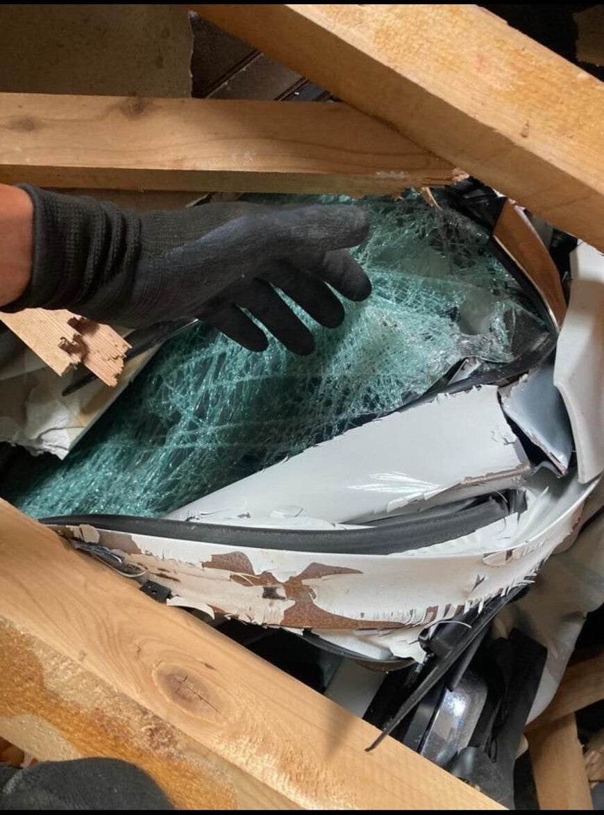 倒壊した家屋の下敷きになり、仕事で使用していたトラックも潰れてしまいました。