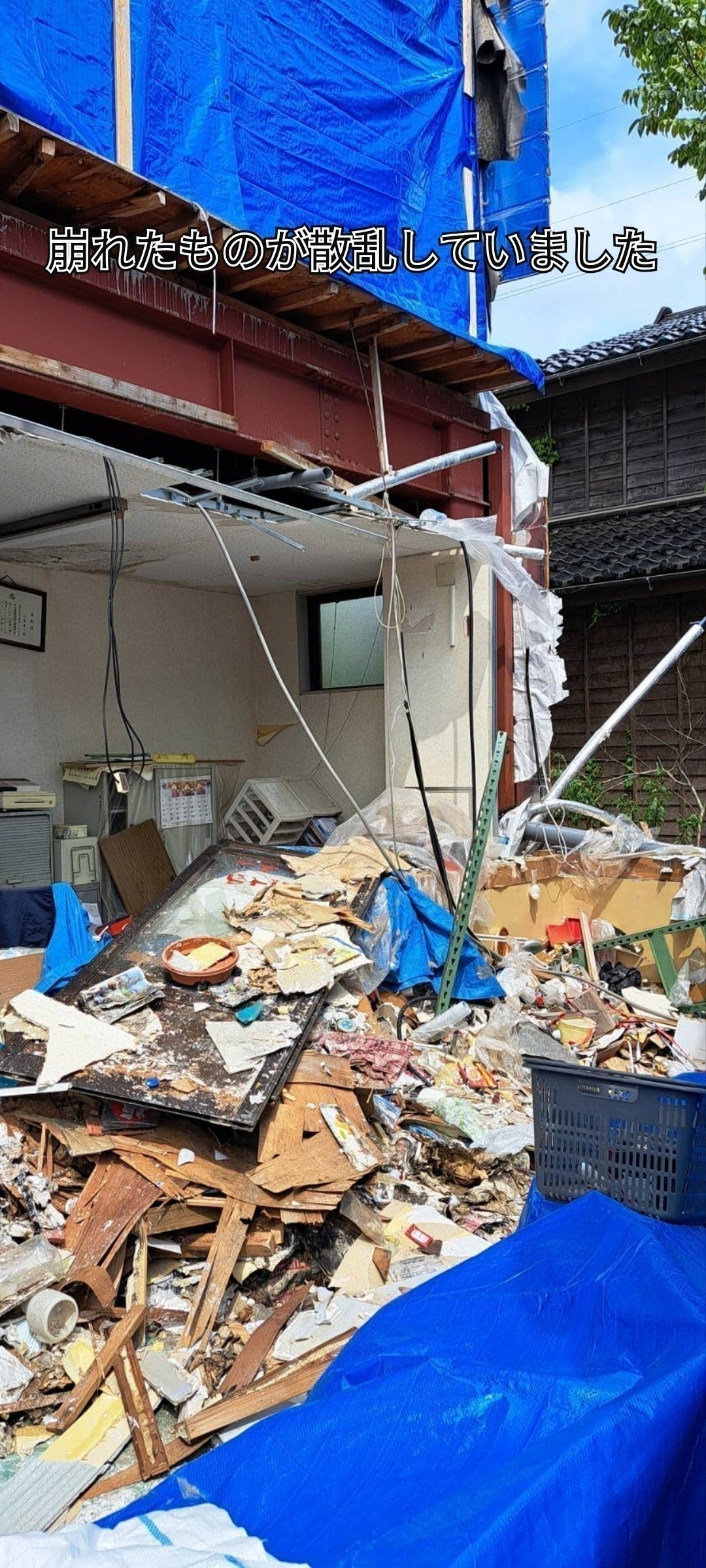 能登半島地震は多くの家屋や施設に大きな被害をもたらしました。自宅兼農機具店であった家も農機店部分が倒壊、建物も基礎がやられてしまい全壊判定となり、住めない状態となってしまいました。