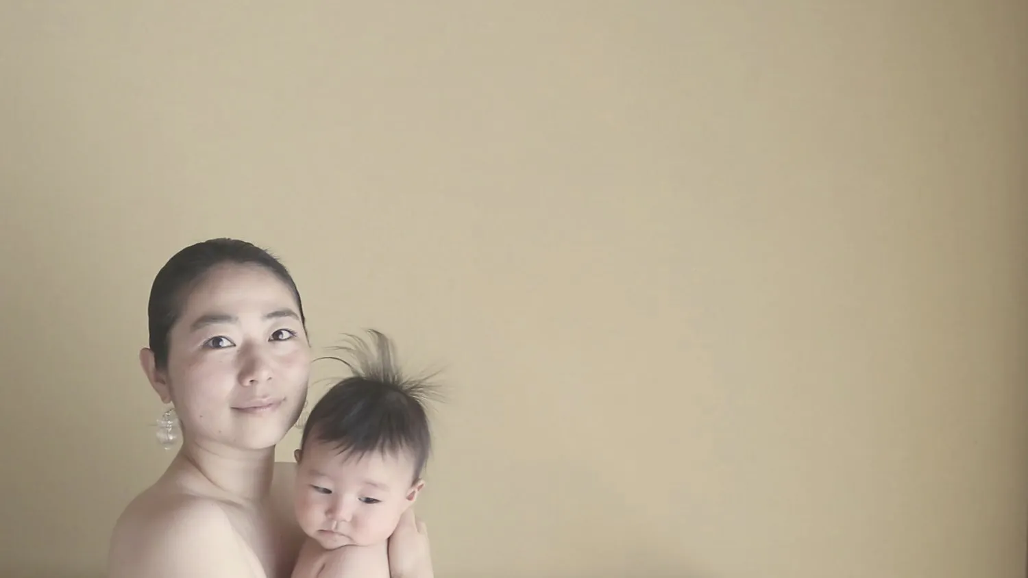 娘を片手で抱っこしながら生まれました。
