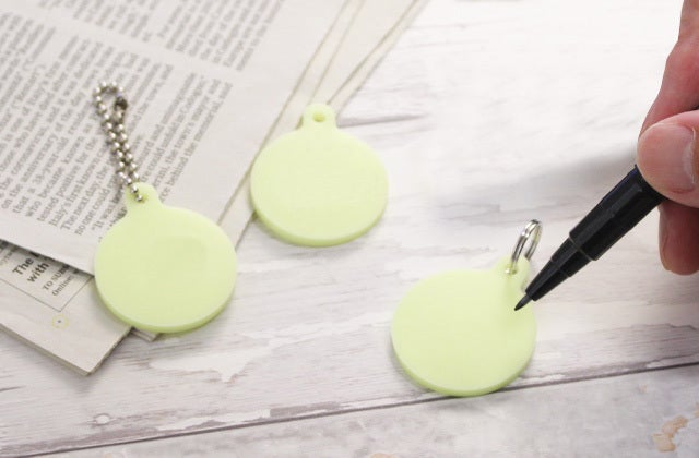 現在、蓄光キーホルダーで販売されているものは、プラスチックなどの透明なケースに蓄光素材が入っているものが多く素材がそのままキーホルダーになっているものが少ないです。透明ケースが割れることがあり、中の素材が散乱したりする問題があります。また、プラスチック素材のものは硬く輸入品が多いのが現状です。