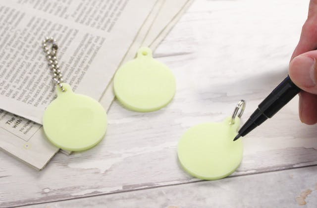 蓄光シリコンは特殊なので、一般的な油性ペンではうまく書けない場合があります。「三菱鉛筆 uni 油性ペン パワフルネーム」で書いてください。このペンだったら綺麗に書けます。