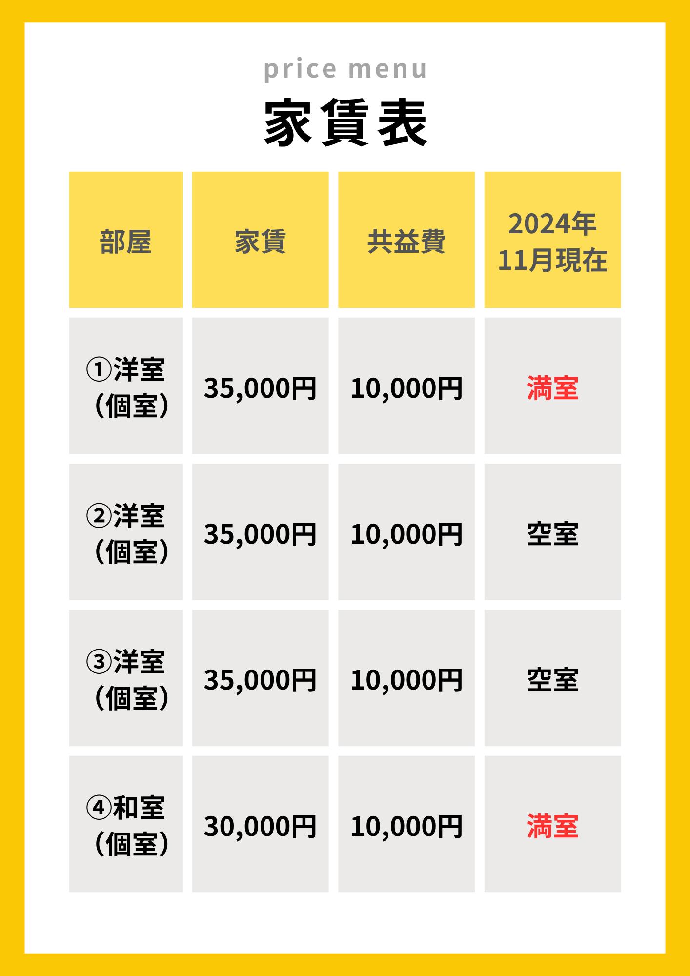 物件の完成は年内を目処としており、2025年1月からお住まい頂けます!現状、2人の住人を募集しており、入居日については、ご相談させて頂きます!