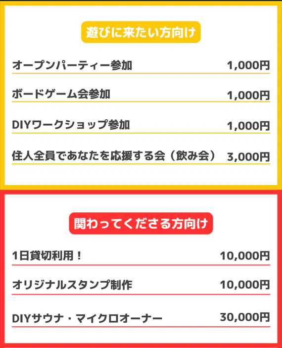 このプロジェクトを通してご支援頂いたお金は、住人や仲間を募集するためのイベントの実施、この物件の修繕、設備購入に使わせて頂きます。