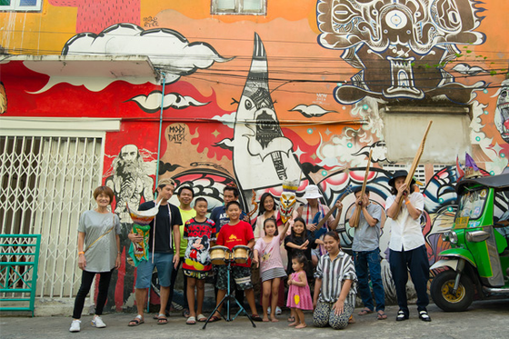 「バンコクのトップアーティスト達がソイの壁に絵を描き、その前を子どもたちが走り回っています。トゥクトゥクも走って来ます。壁画を背に屋台でご飯を食べビールを飲んでいると、ソイで暮らす人たちが気軽に話しかけてくれます。ここに来るとなぜか懐かしく幸せな気持ちになり、また同時に刺激されることも多く、新しいアイデアを思いつくこともよくあります。そしてバンコクに初めてきた人と一緒に行きたくなる場所であり、自分に何かできることがあれば協力したいと思う場所です。今回のカルチャースペース作りもぜひ一緒に実現したいと思っています」