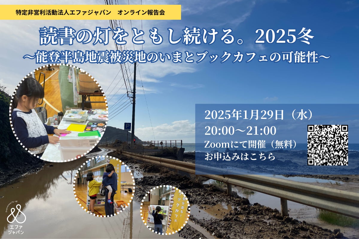 1月29日(水)20:00より「読書の灯をともし続ける 2025冬ー能登半島地震被災地のいまとブックカフェの可能性」と題した報告会を開催します。