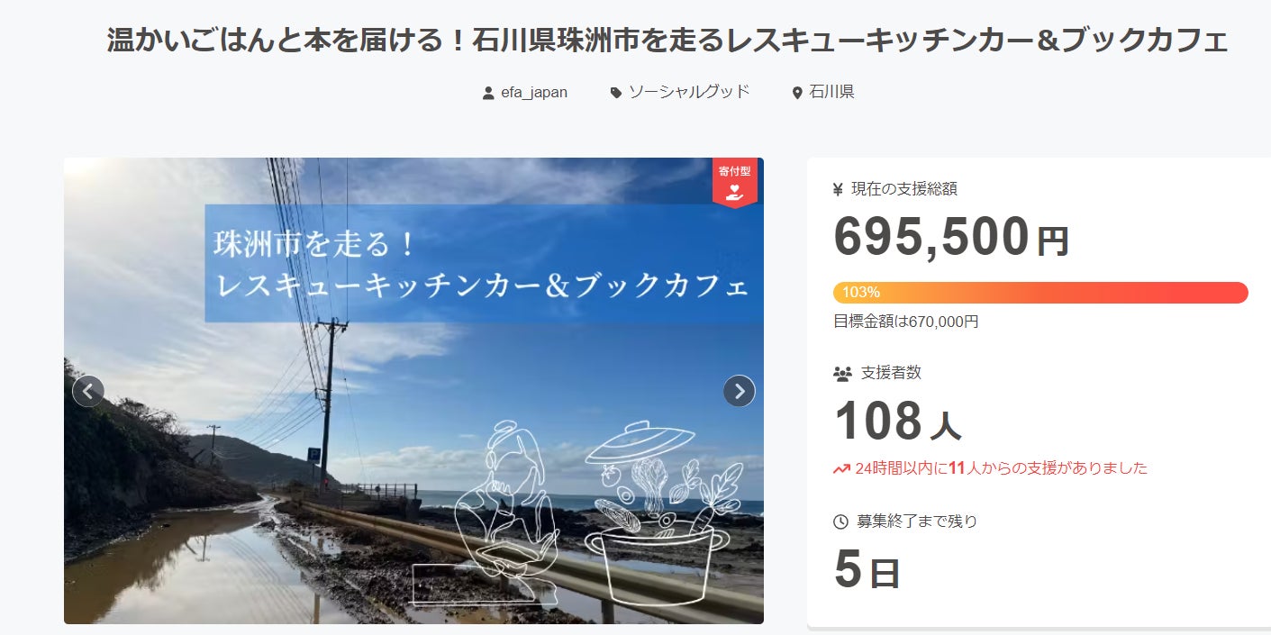 皆さまの心温まるご支援のおかげで、第一目標の67万円に到達することができました!想いのこもった応援と励ましのお言葉の数々に感謝の念を禁じえません。皆さまのご支援はブックカフェ用の備品や書籍の購入費、そして運行にかかる費用として大切に使わせていただきます。11月2日(土)に第1回目のブックカフェの開催が決定しました。この達成があってこそです!本当にありがとうございます。レスキューキッチンカーとブックカフェの運行の様子は、こちらの活動報告を活用しお伝えさせてください。改めまして皆さまのご支援に感謝いたします。このクラウドファンディングも残すところあと5日となりました。現地からの声にお応えするためにネクストゴールの設定を考えております。また決まりましたら、ご報告させてください。お願いばかりで恐縮ですが、どうぞよろしくお願いいたします。エファジャパンプログラムマネジャー鎌倉幸子ラオスから「ありがとうございます!」