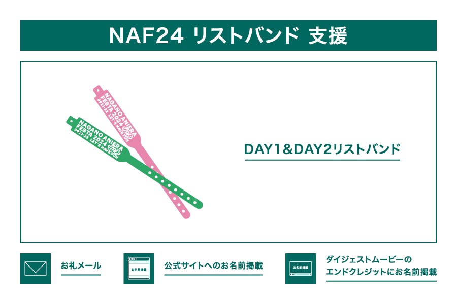 昨日、新たなリターン「NAF24 リストバンド支援」を追加させて頂きました。