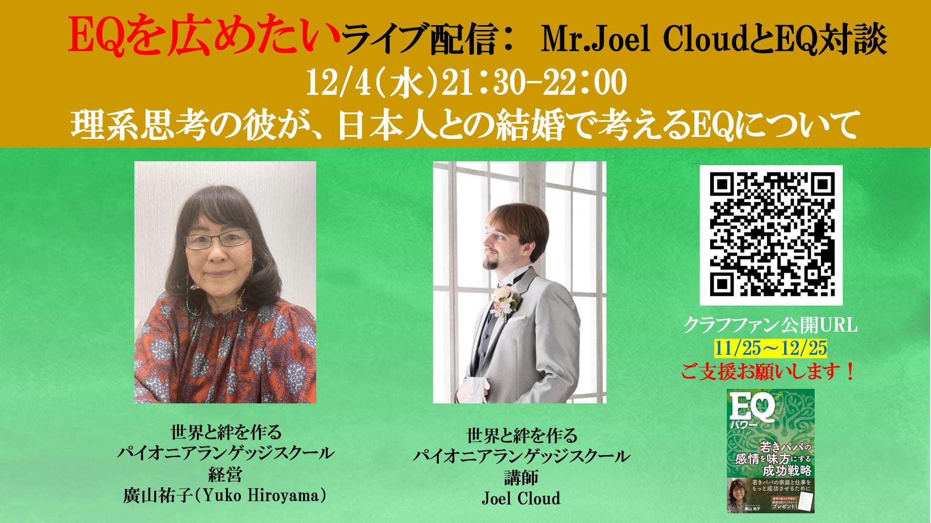 英語講師のJoel講師が12月に日本人の方と結婚します!EQスキルをどう使うか話します!文化の違う彼がどんな感情を持って日本人の女性と向き合おうと努力しているのか興味津々ですね!