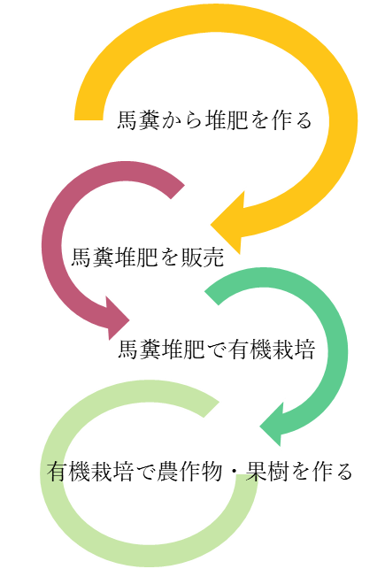 馬の堆肥を使い、有機栽培で農作物や果樹を作り販売できるようにします。