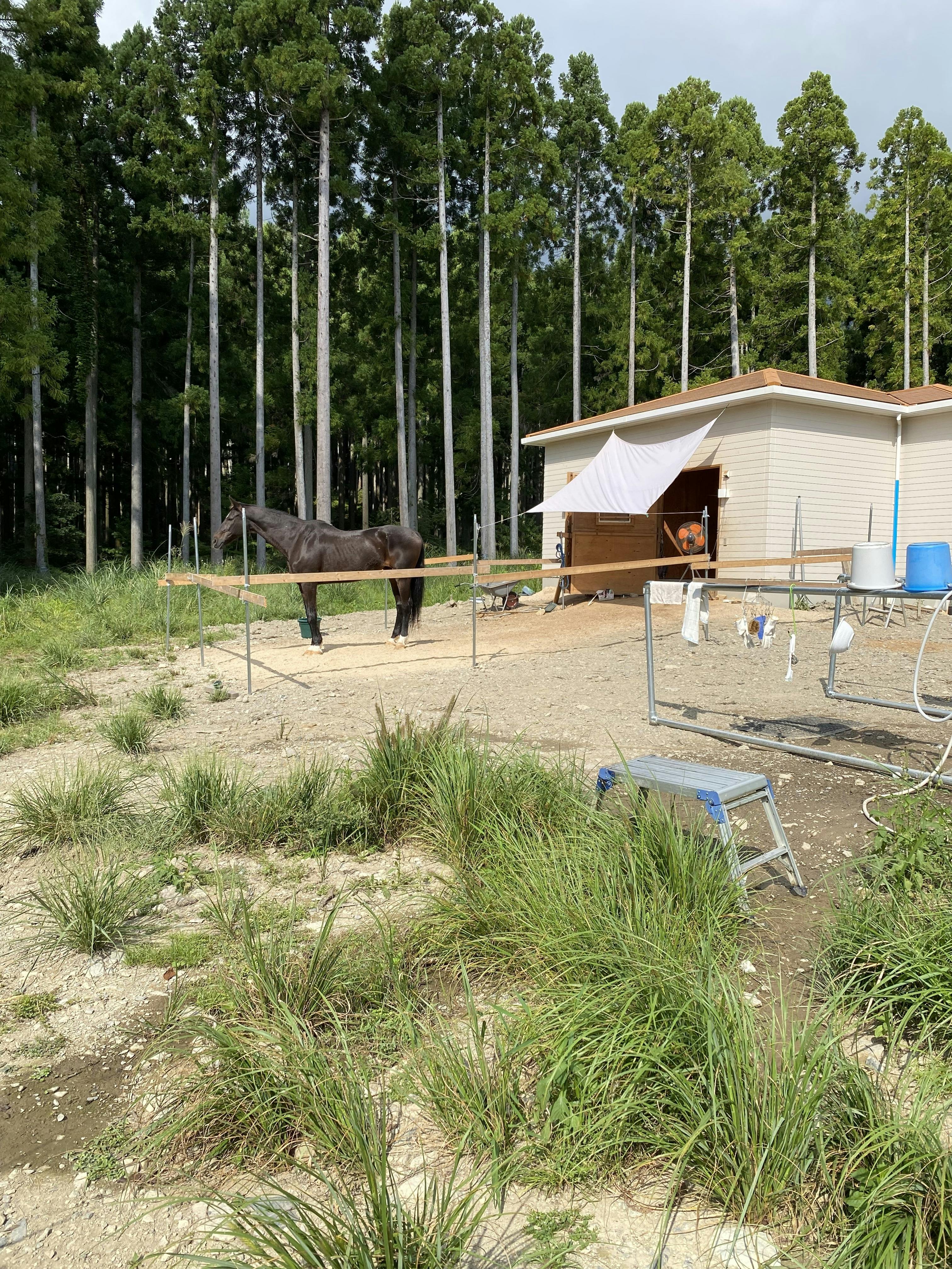 今は、厩舎自体は建ったものの、外構がまだできていないです。