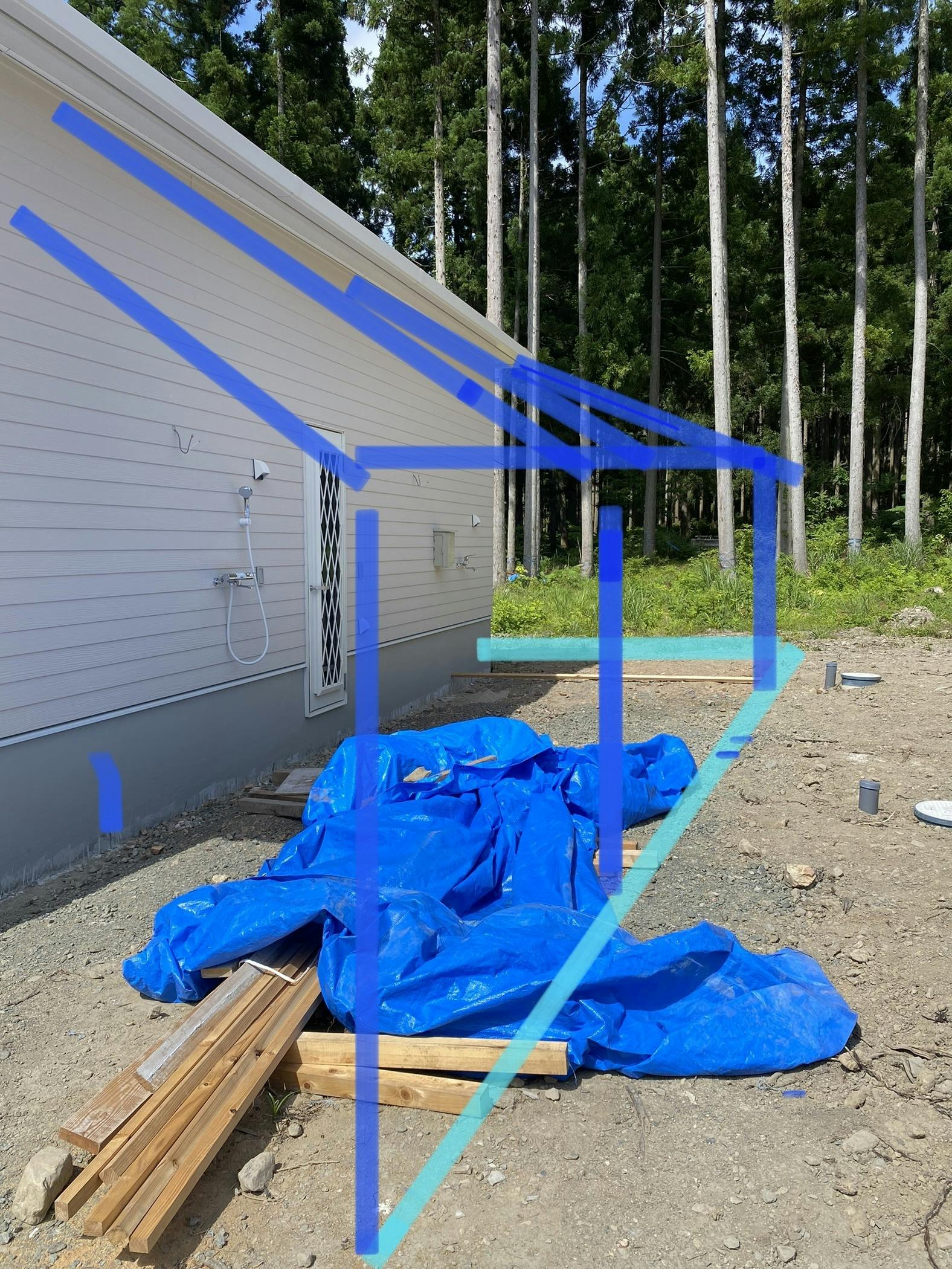 厩舎前のパドックの柵と一部屋根を付けます。マキノ町は雨や雪が多いので、屋根付きパドックを作ることで、雨の日も雪の日もパドックに出て動き回れます。計8か所。