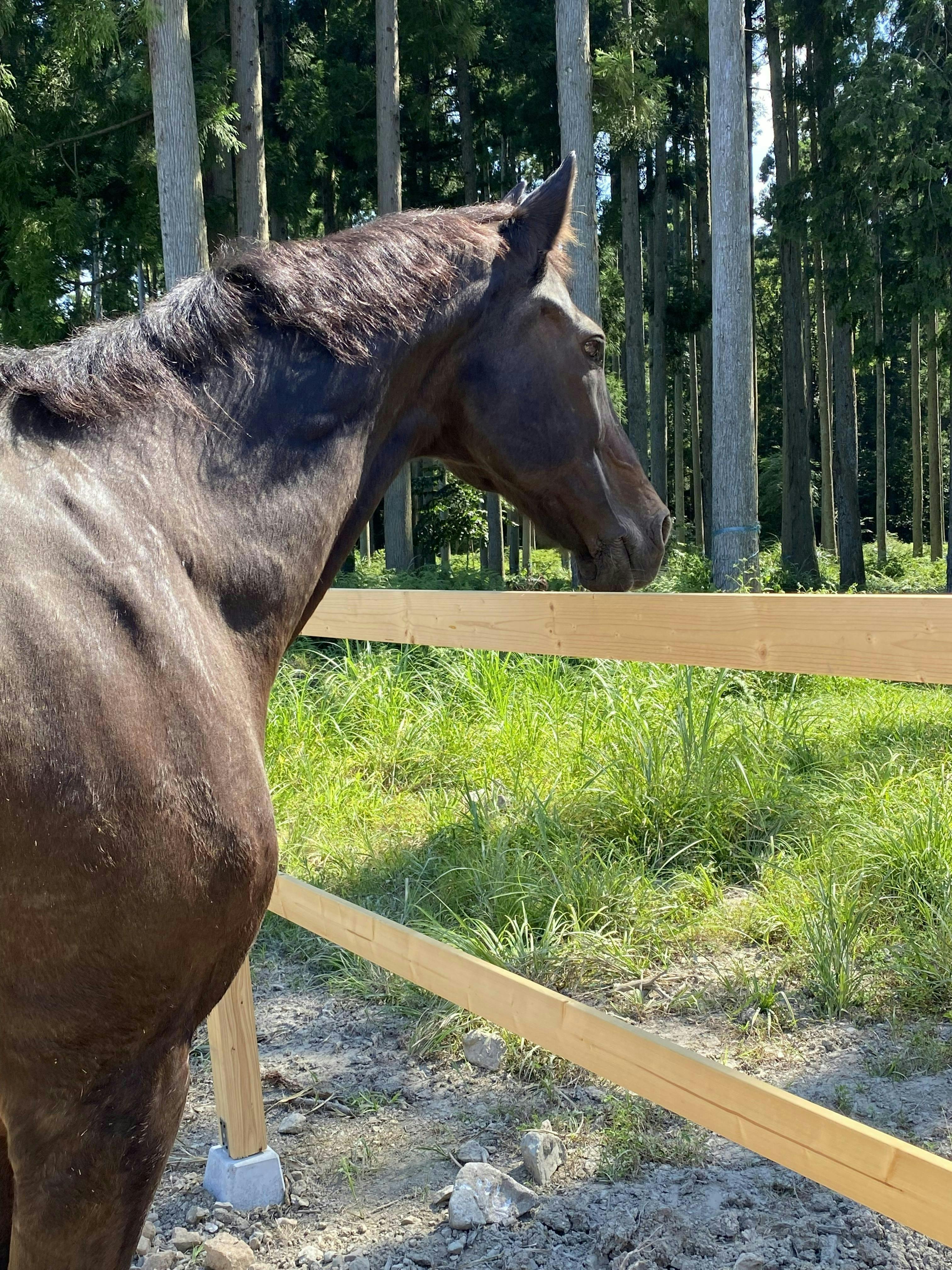 2024年3月に養老牧場「Champs du verger (シャン デュ ベルジェ)」を開設しました。代表の犬飼です。長時間放牧で、馬がゆっくりと過ごせる牧場を目指しています。乗馬は6年程度していましたが、馬の脚が悪かったので、馬の脚の治療体温管理(仙痛をおこさなように体温調節)等を13年程してきました。預託施設の管理、運営を相談したり見てきて、馬が大好きな放牧を、長時間できる牧場を作りたいと思い開設しました。