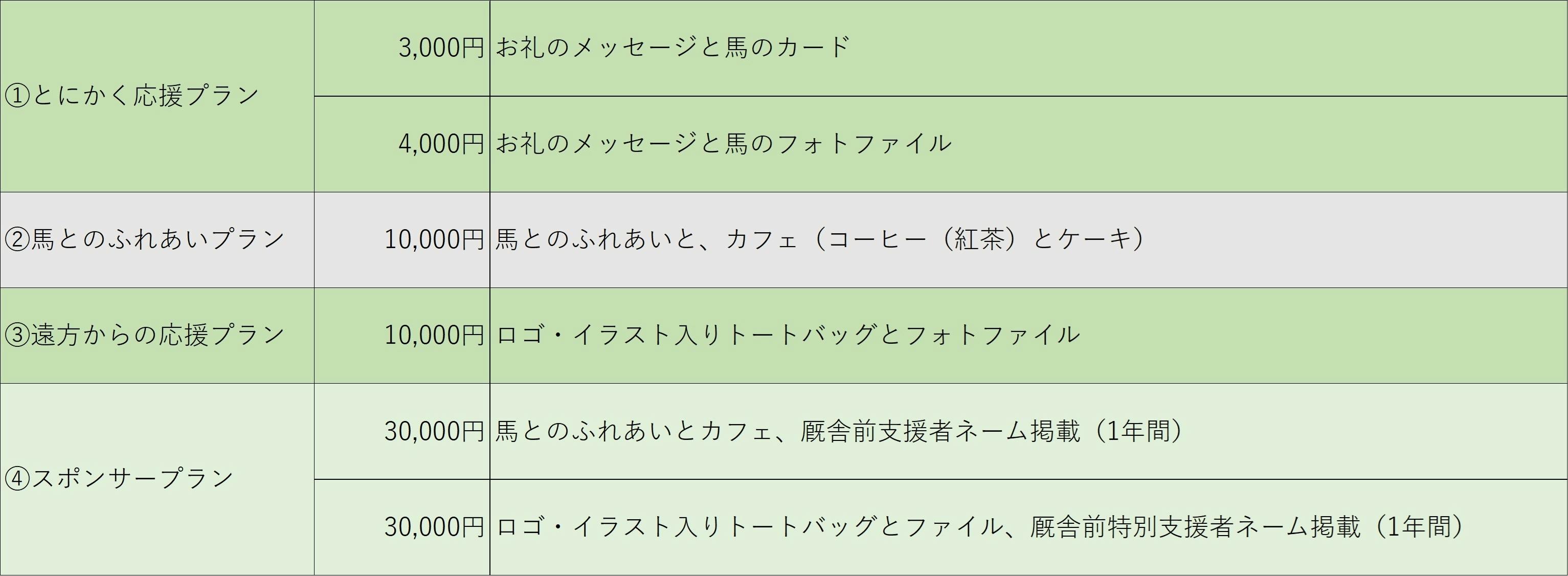 リターンは牧場に訪れて自然の中で馬とのふれあいや、遠方からでも応援いただけるプランをご用意しています。 (詳細はリターンページをご覧ください)