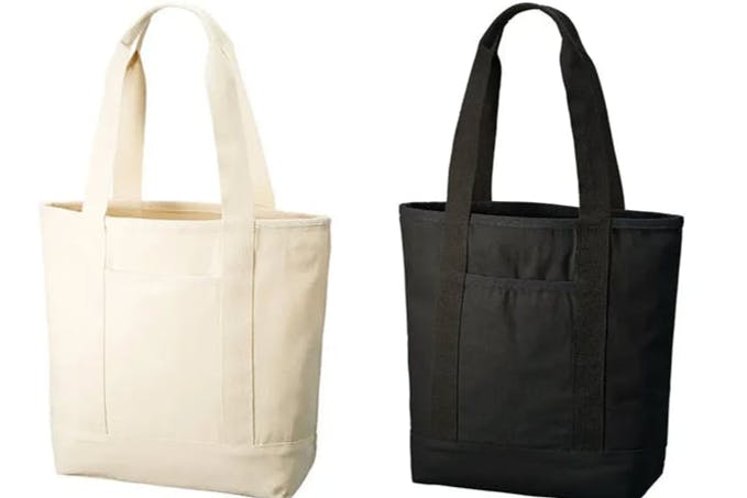 ロゴが入った、A4サイズのオーガニックコットントートバッグ