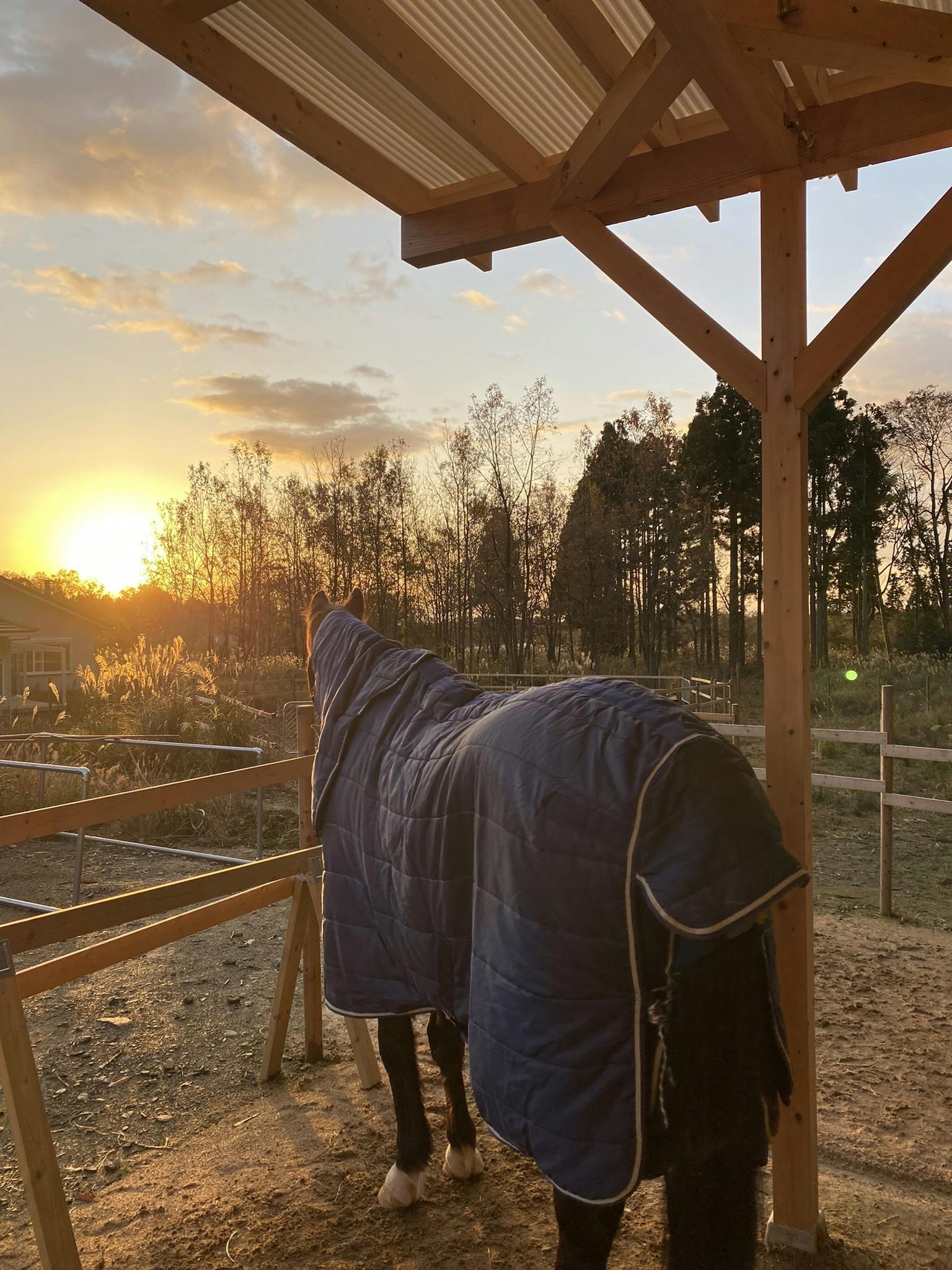この一部屋根付きパドックを全頭につけてあげたいです。
