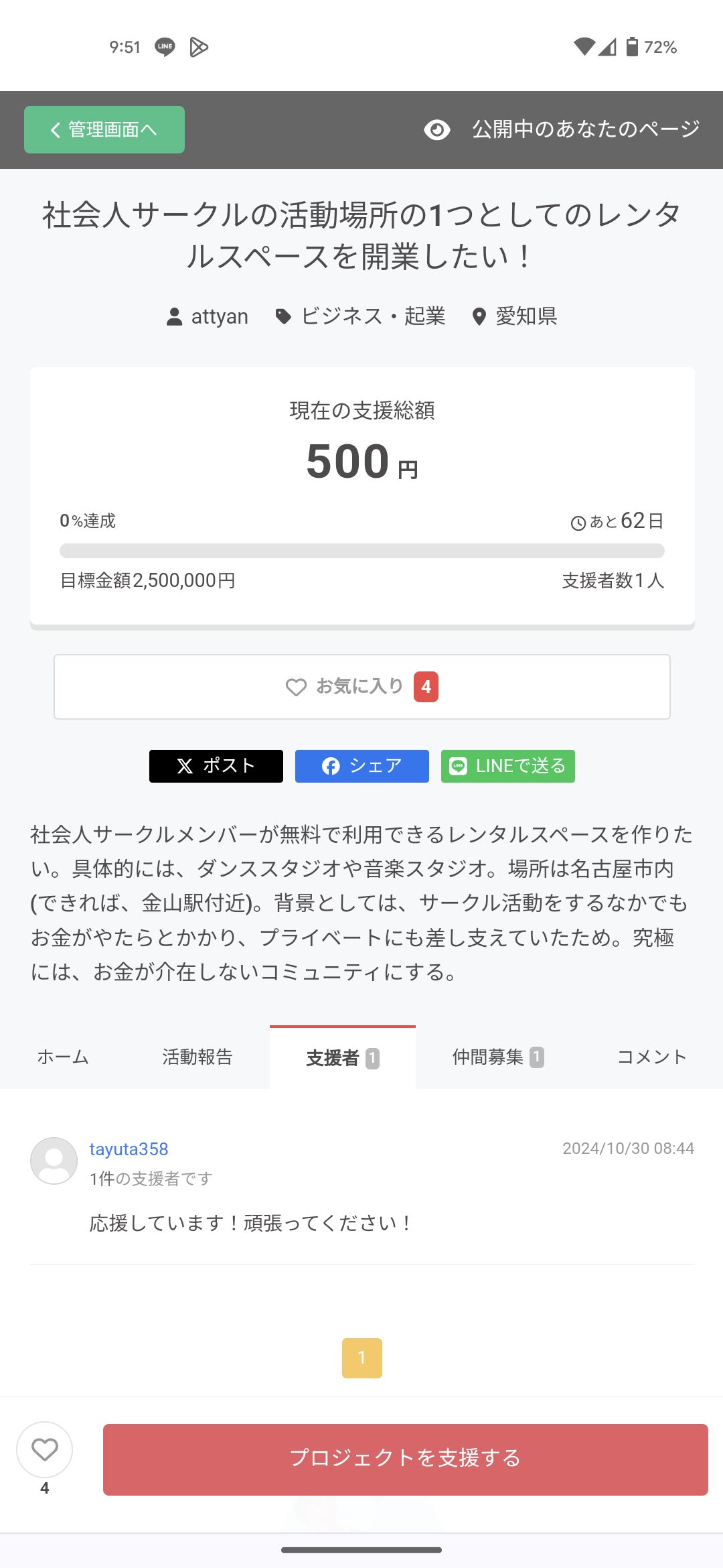 支援者数5人