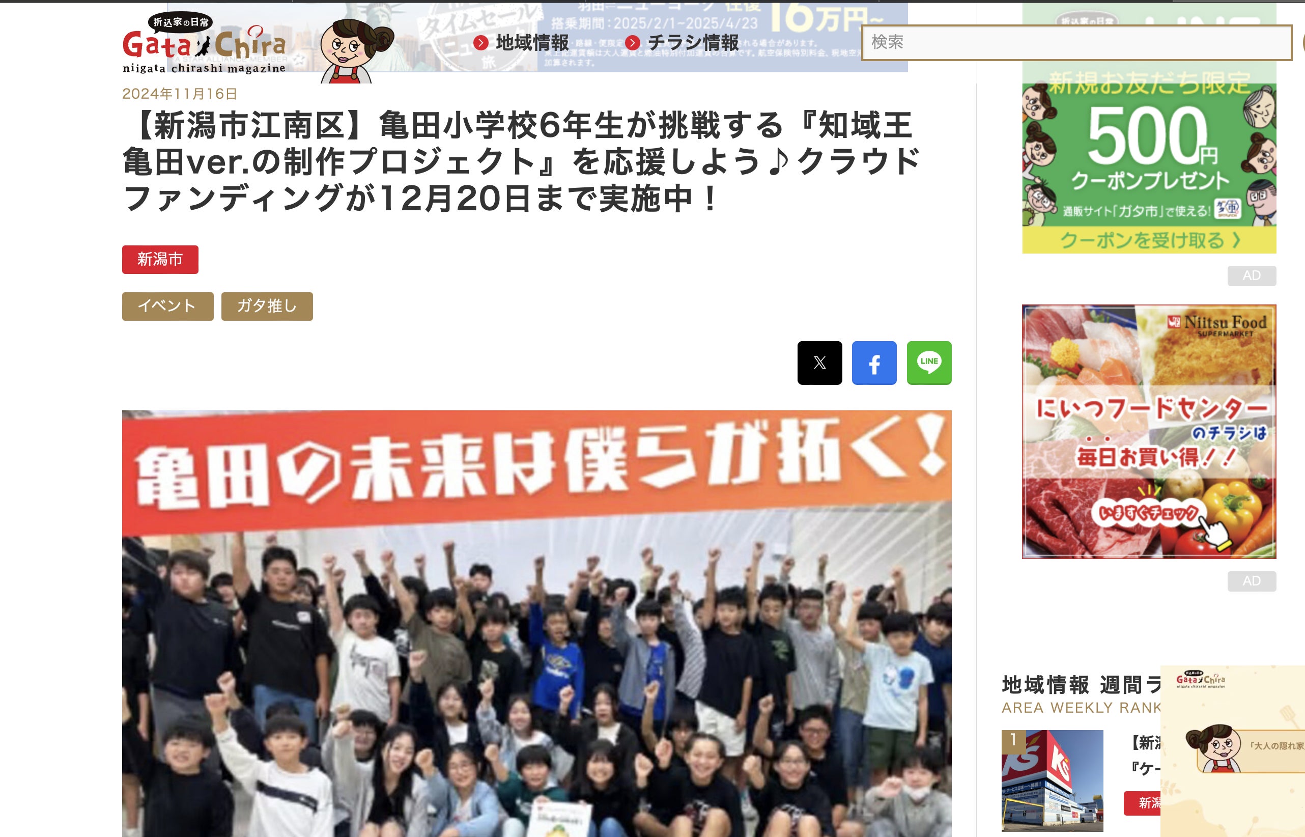 新潟の情報を発信するサイト「ガタチラ」に子ども達の取り組みが紹介されました!