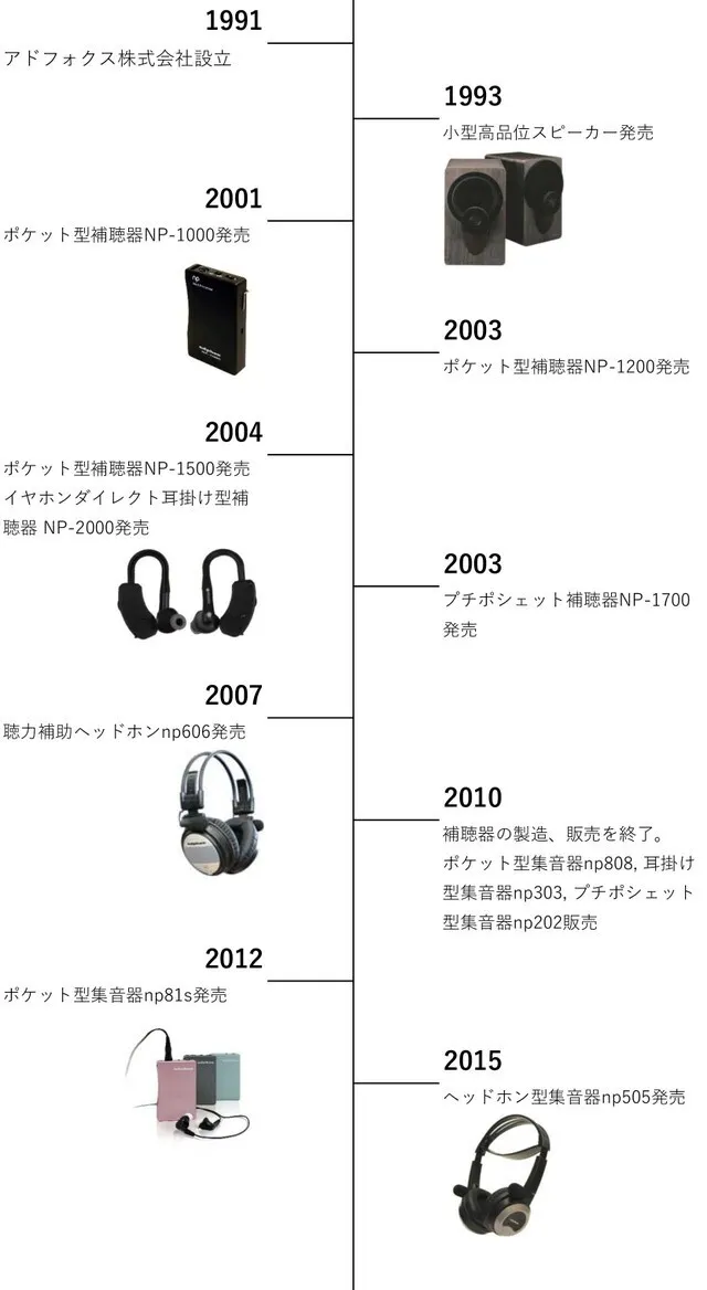 当社アドフォクスでも長年に渡り集音器の研究開発・製造販売に携わり、試聴サービスをご利用頂く中で「試聴機を借りたが、使ってもらえなかった」という声が沢山ありました。一方で、我々はこれまで高級オーディオ由来の設計思想で音声明瞭化回路や雑音対策の設計開発を行っており、その技術は従来の集音器の音質に満足いただけない方からこれまでに高い評価をいただいています。