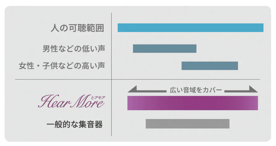 「ヒアモアCiel(シエル)」は、ただ音を大きくするというレベルではなく、普段の会話はもちろん、音楽を聴いたときにでも、ずっと聞いていたくなるような惚れ込める音質を与えよう、そんな目標をもって開発を行いました。