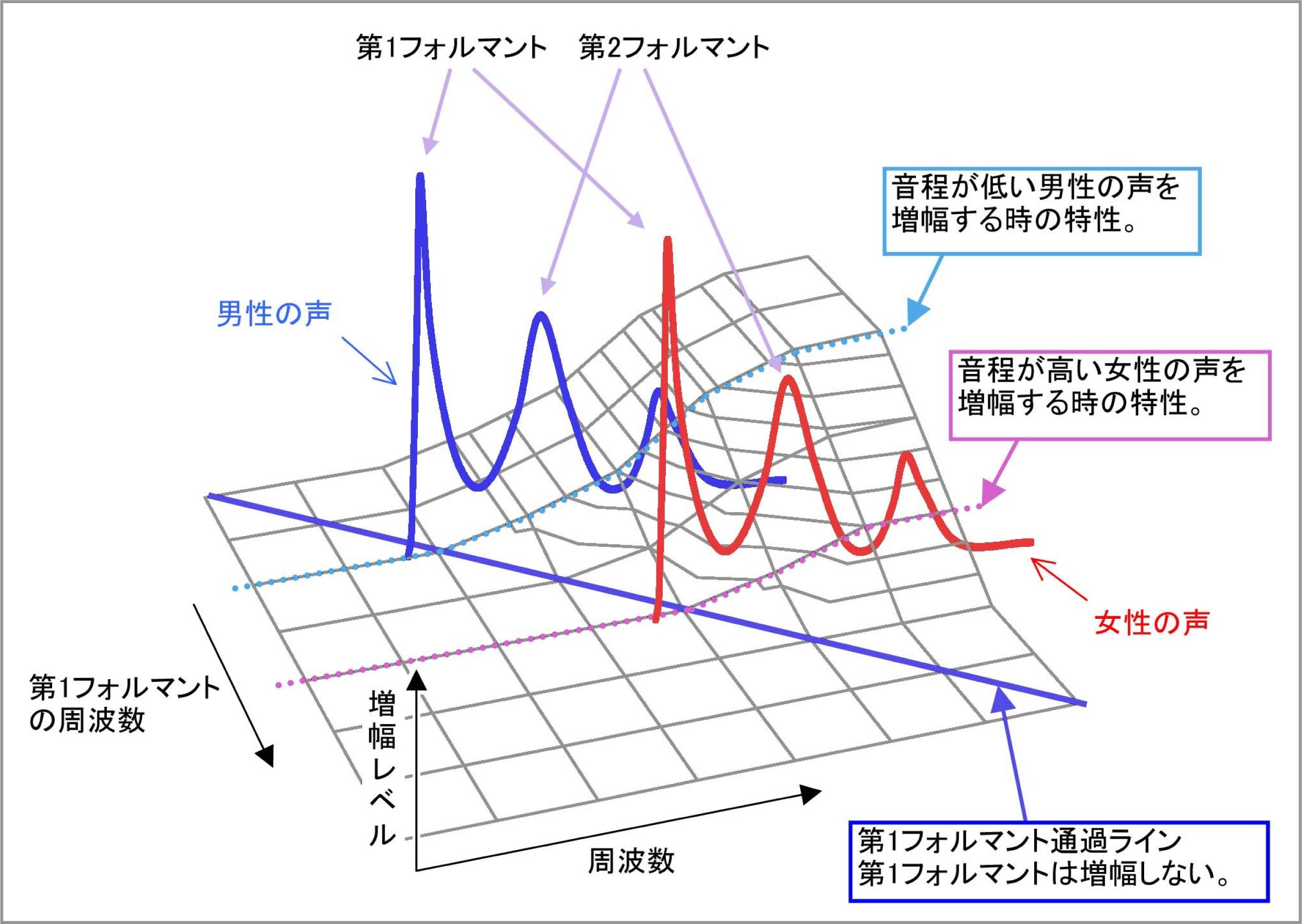 男性の声に合わせた増幅特性のままだと、女性や子供の声がキンキンしたり、距離感が大きく狂うことがあります。ニートプロセッサは自動的に周波数特性を調節して音がキンキンするのを防ぎ、既に聴こえている成分は増幅しないので、音の距離感を正確かつ自然な音質で伝えます。