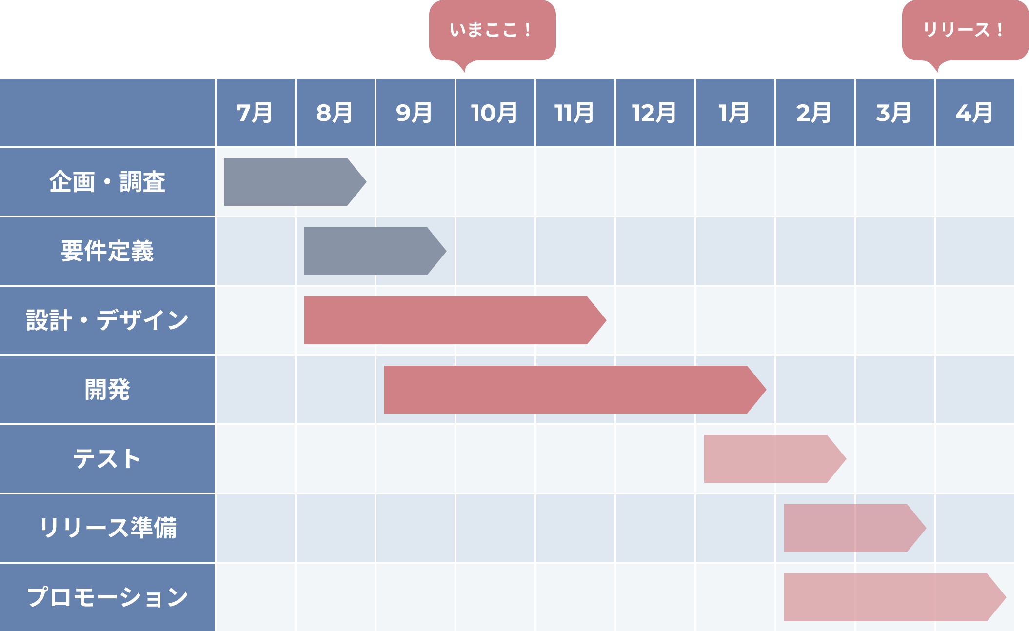 その後は4月1日のリリースに向けて、テストや不具合修正およびアプリのプロモーションを行います。