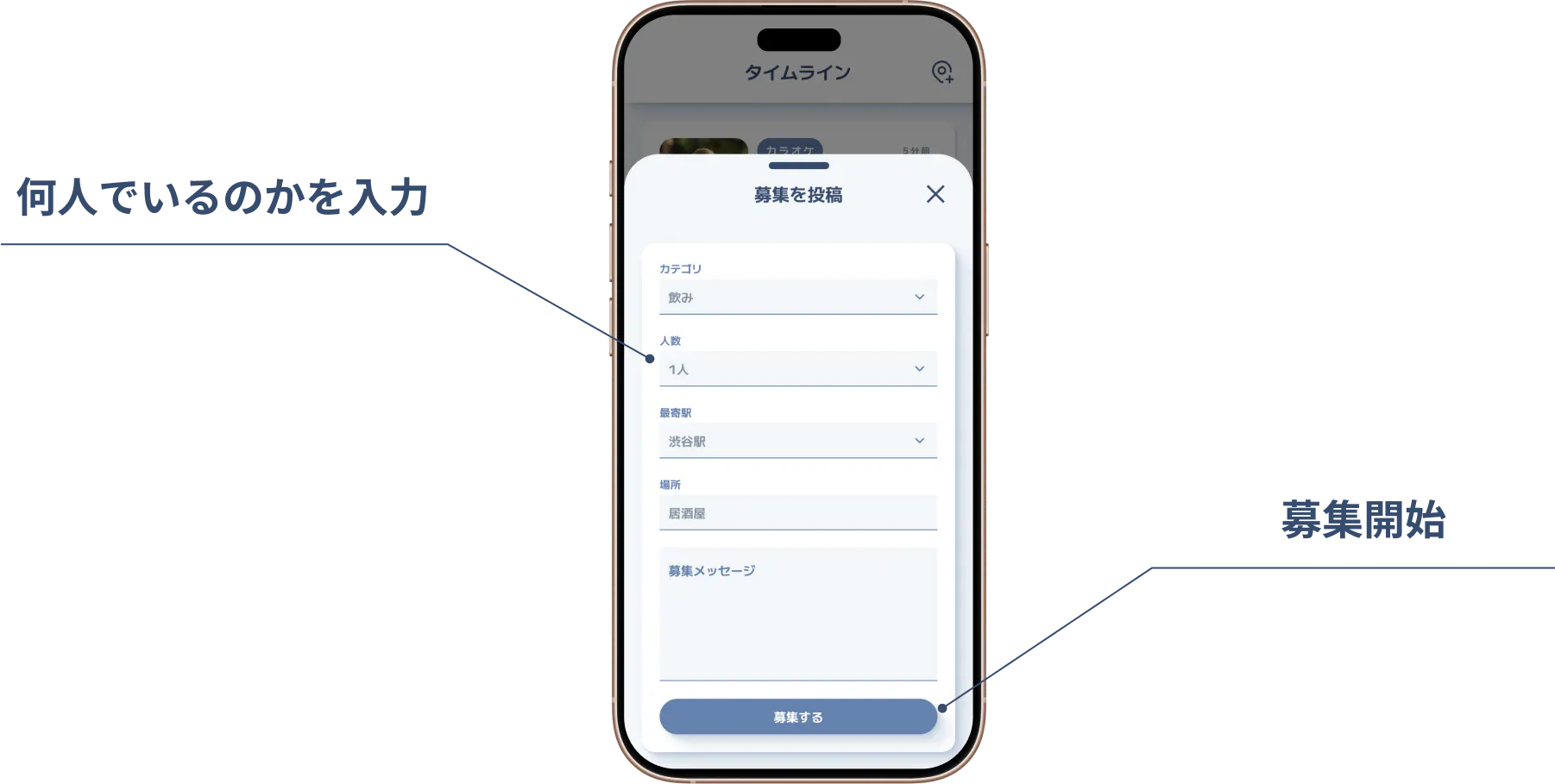 募集をかけるときに、人数を入力することができます。