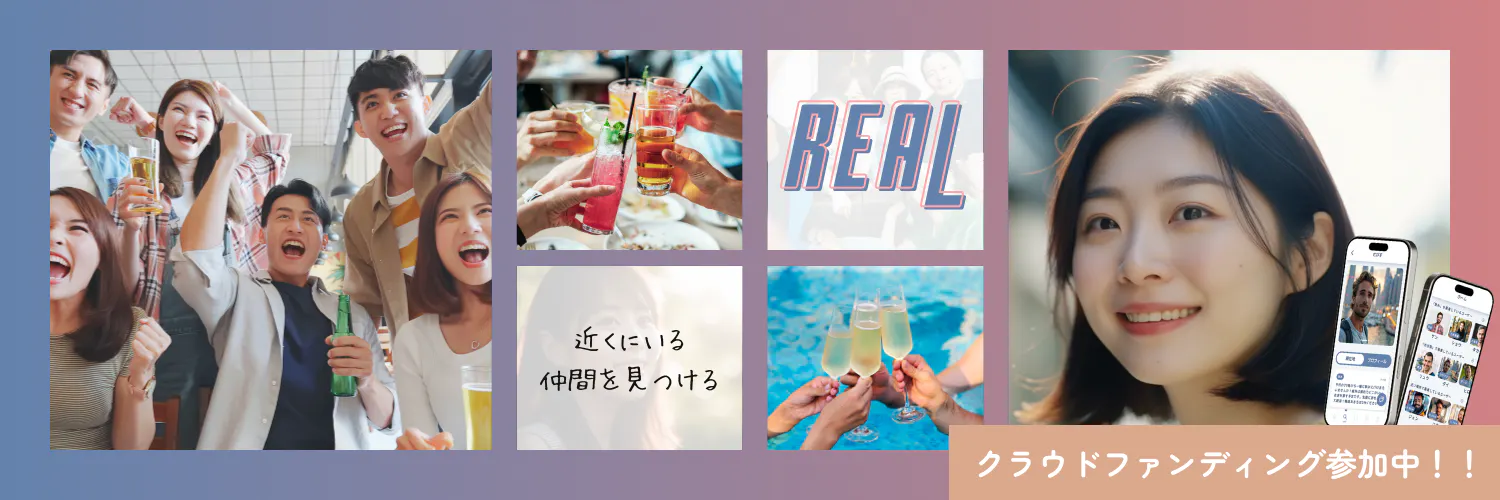 友達や仲間と「今すぐ楽しめる」経験をもっと身近にすることを目指して、「REAL」を開発しています。