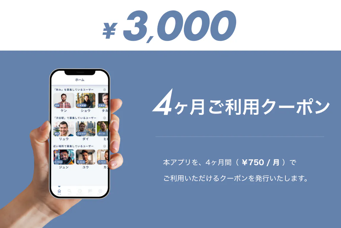 ■本アプリを4ヶ月間(¥750 / 月)ご利用いただけるクーポンを発行いたします。