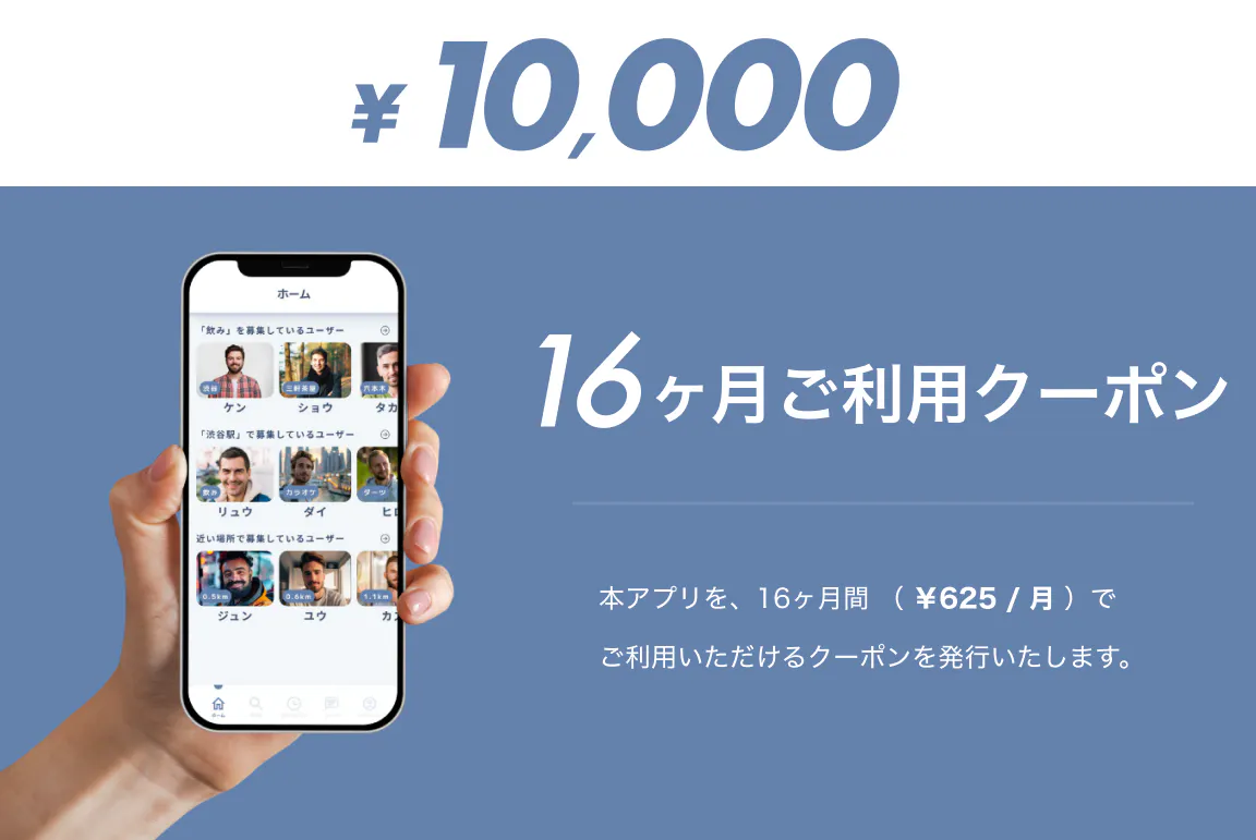 ■本アプリを16ヶ月間(¥625 / 月)ご利用いただけるクーポンを発行いたします。