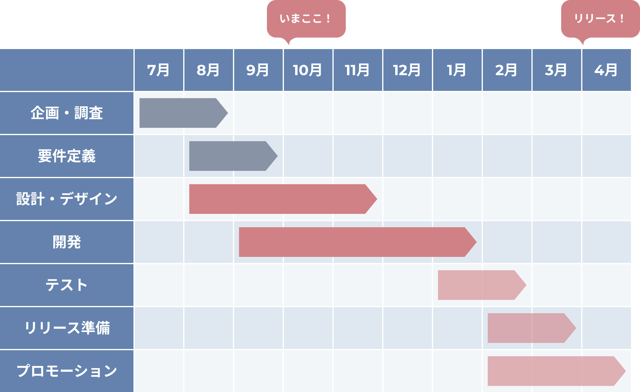 その後は4月1日のリリースに向けて、テストや不具合修正およびアプリのプロモーションを行います。