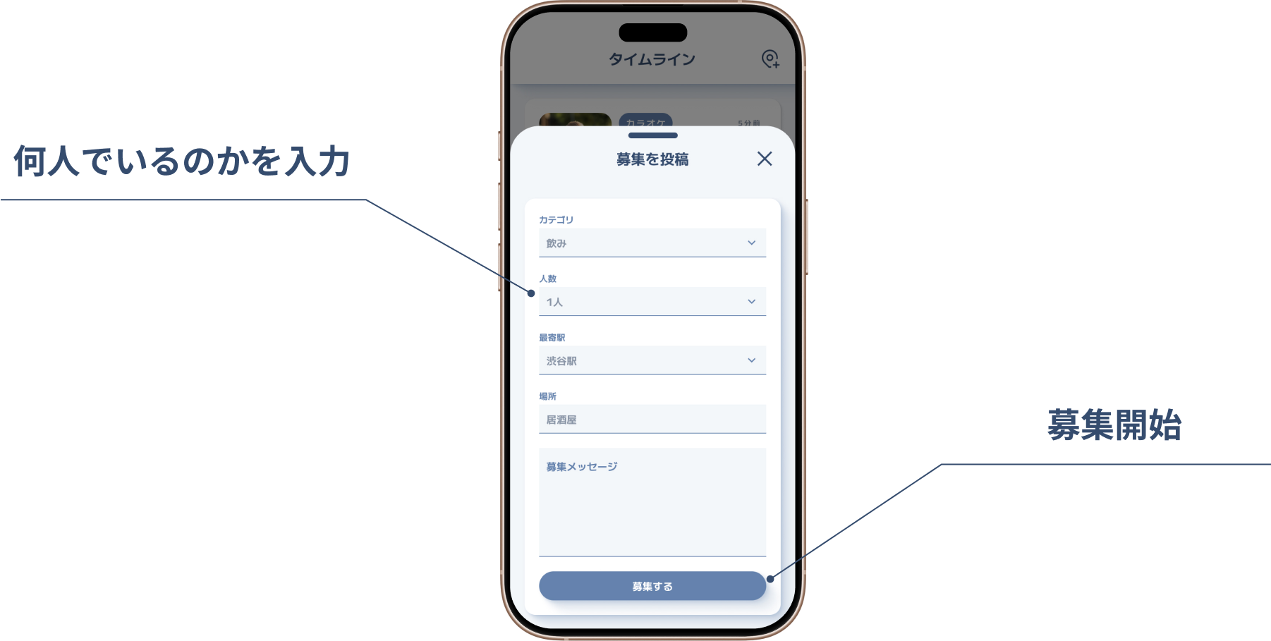 募集をかけるときに、人数を入力することができます。